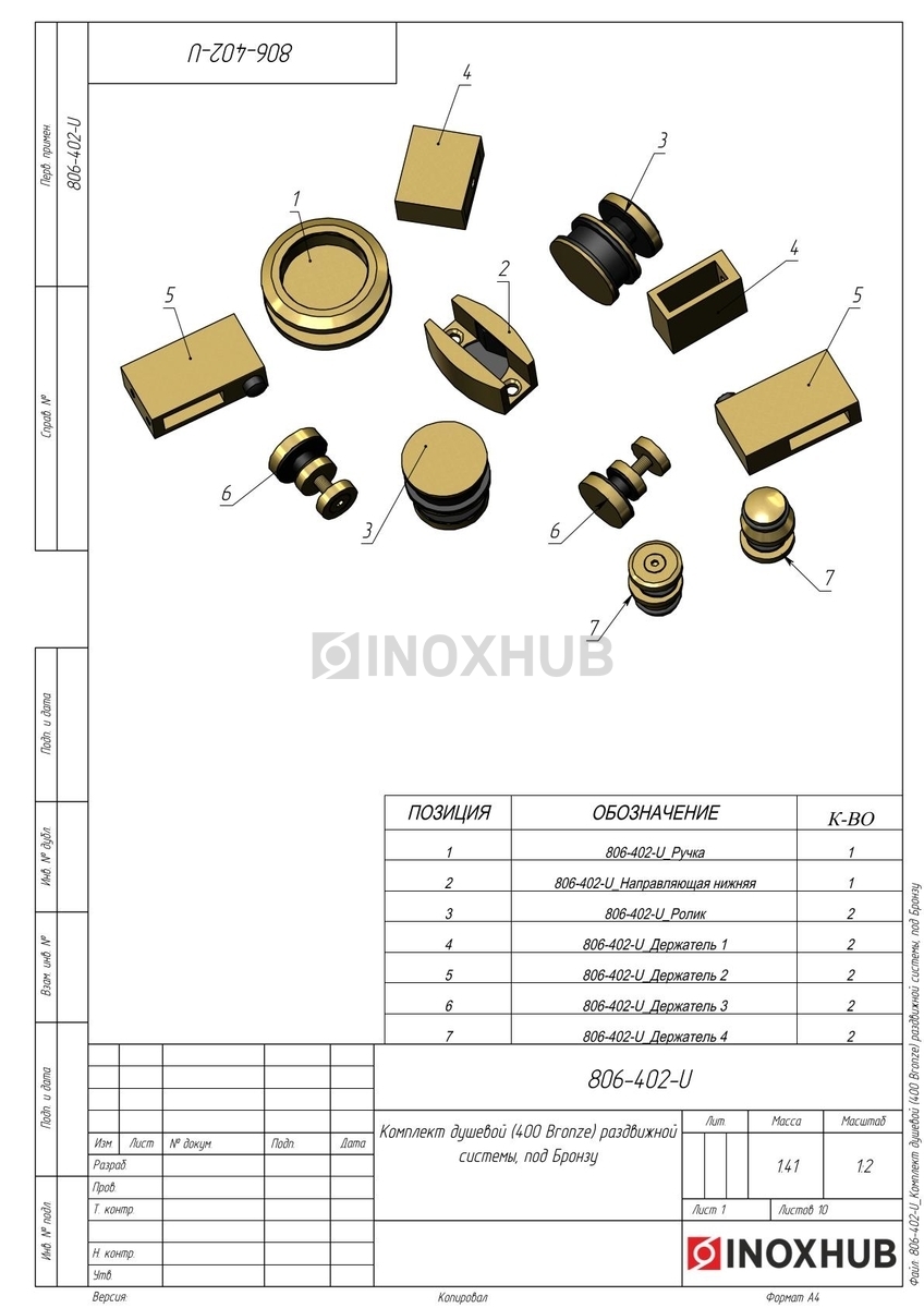 Комплект душевой (400 Bronze) раздвижной системы, под Бронзу, в соответствии отраслевым стандартам из коррозионно-стойкого материала. Изделие применяется в составе металлических, стеклянных или комбинированных конструкций, где важны точные размеры, прочность соединений и стабильность в эксплуатации. Может использоваться при внутреннем и наружном монтаже — в зависимости от поставленной задачи и совместимых компонентов.