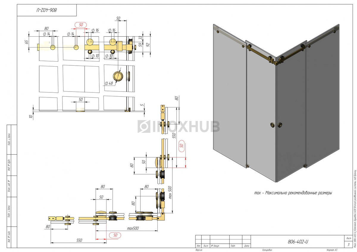 Максимальные размеры створки при консольном закреплении трека – 500х2000 мм.