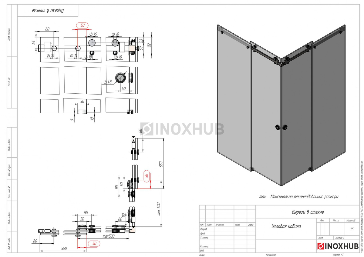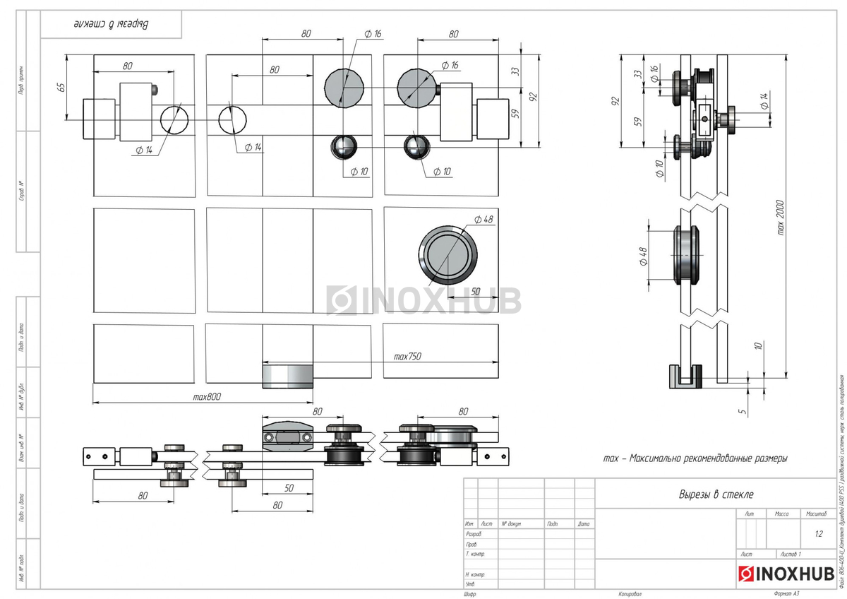 Максимальные размеры створки при консольном закреплении трека – 500х2000 мм.