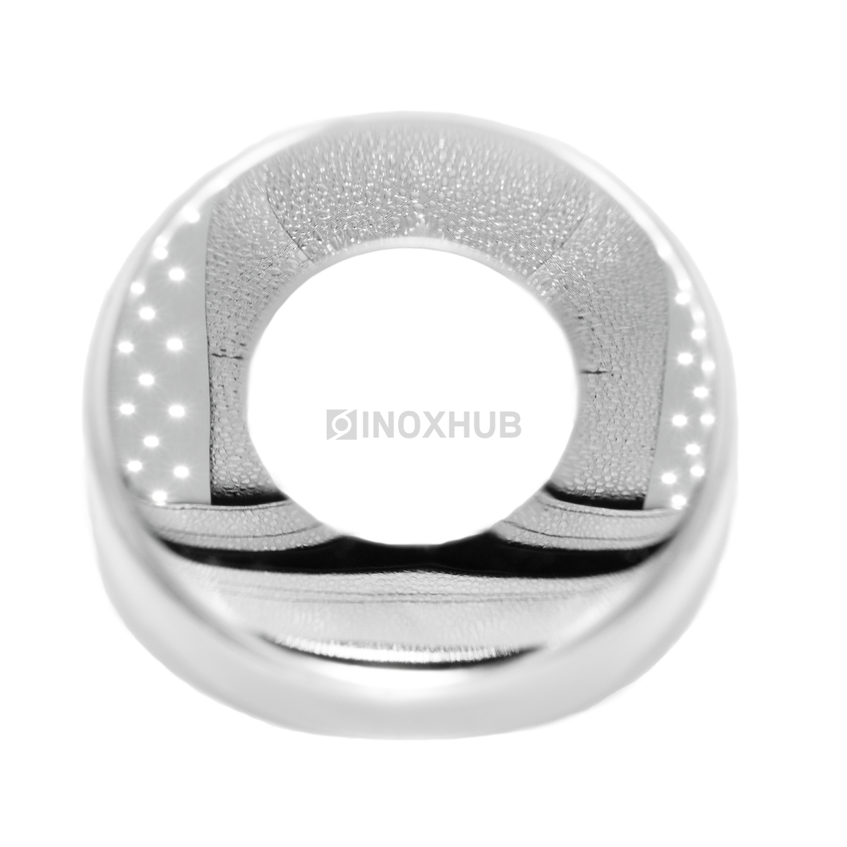 Низ стойки диаметром 100 мм из нержавеющей стали AISI 201 используется для труб 50,8 мм. Поверхность полированная, глянцевая — GRIT 600.