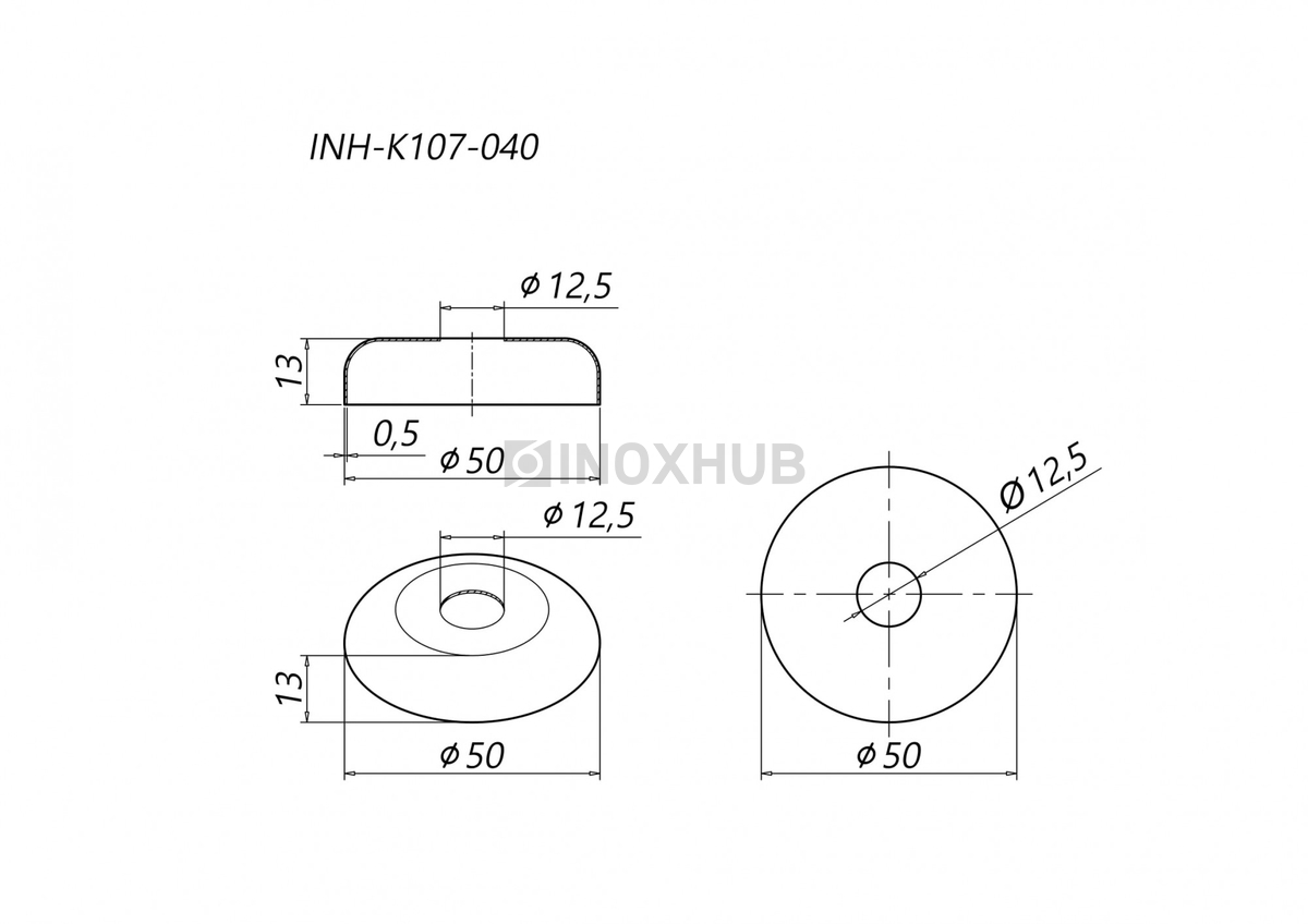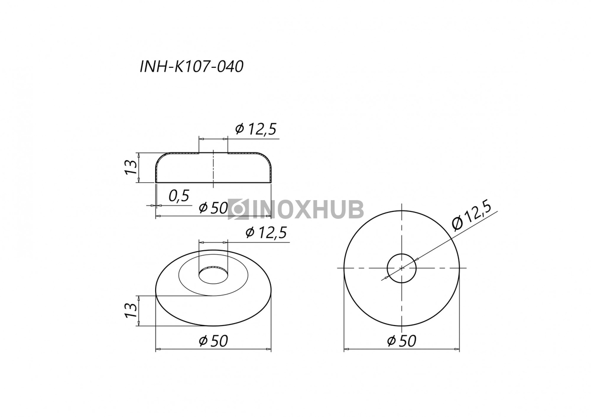 Декоративный низ стойки диаметром 50 мм. Выполнен из стали AISI 304. Поверхность изделия полированная — GRIT 600.