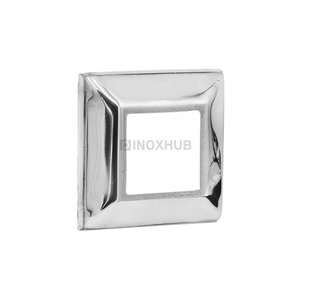 Низ квадратной формы 82х82 мм подходит для стоек 40х40 мм. Материал — нержавеющая сталь AISI 304. Поверхность полированная — GRIT 600.