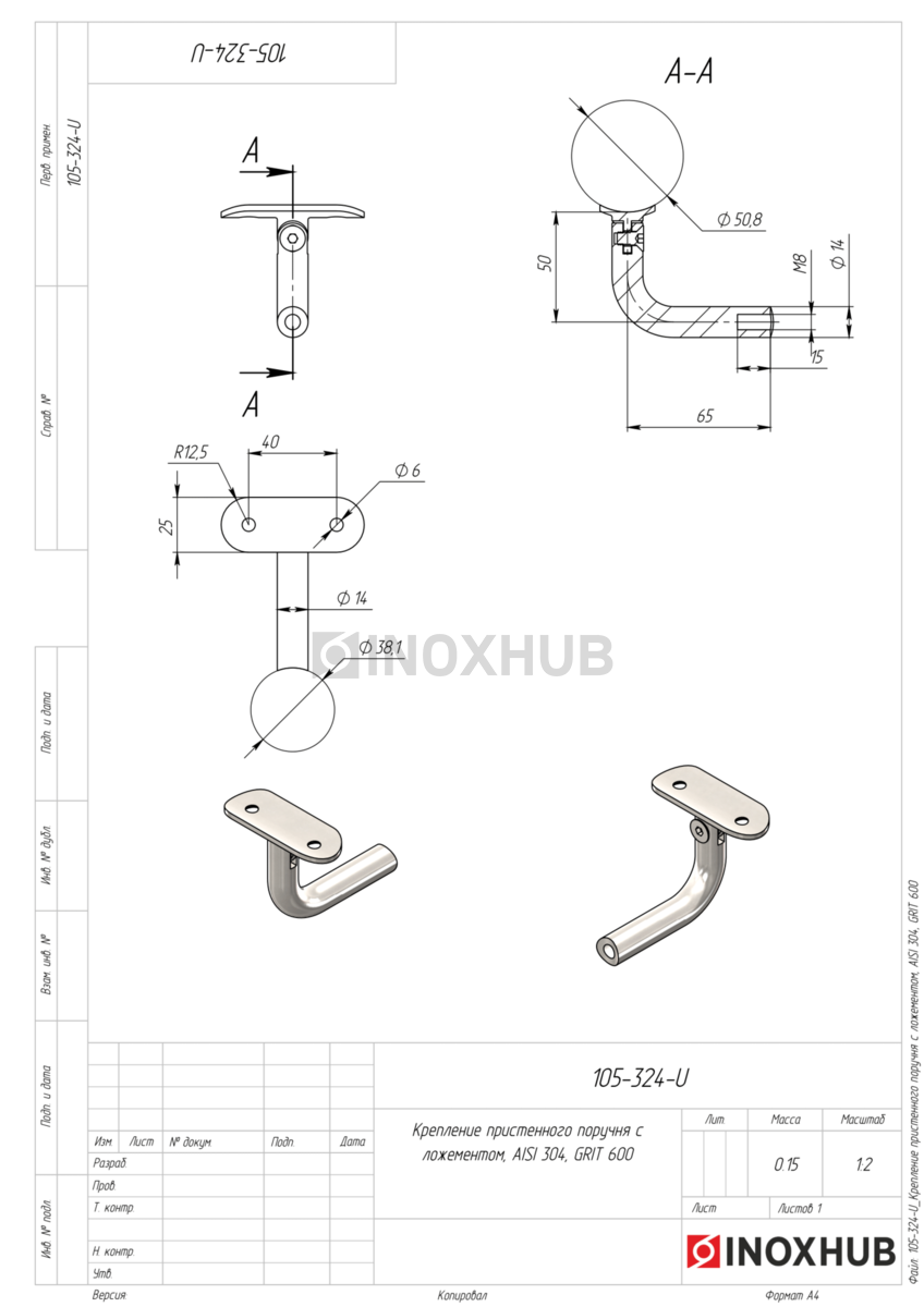 Крепление поручня с ложементом (Ø50.8), AISI 304, GRIT 600, в соответствии отраслевым стандартам из коррозионно-стойкого материала. Изделие применяется в составе металлических, стеклянных или комбинированных конструкций, где важны точные размеры, прочность соединений и стабильность в эксплуатации. Может использоваться при внутреннем и наружном монтаже — в зависимости от поставленной задачи и совместимых компонентов.