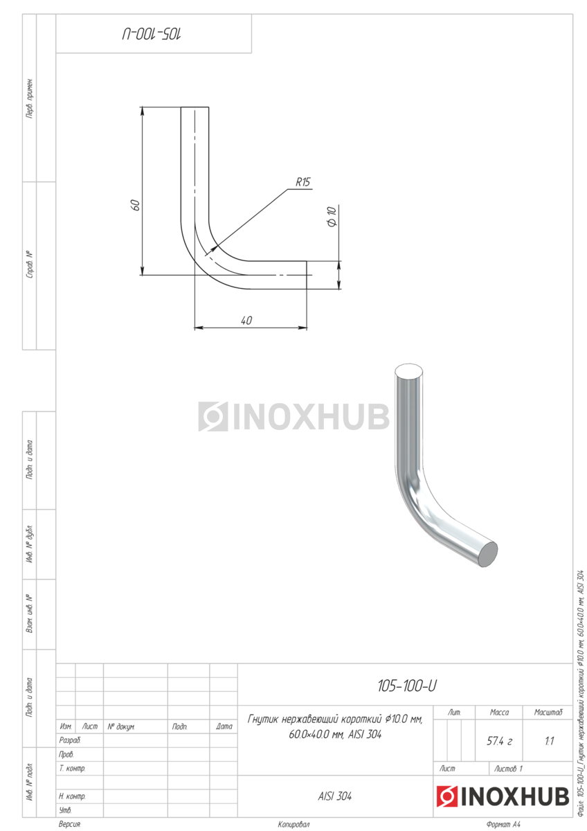 Гнутик нержавеющий короткий Ø10.0 мм, 60.0×40.0 мм, AISI 304 в продаже. Оперативная доставка со склада в Москве. Все товары соответствуют стандартам качества.