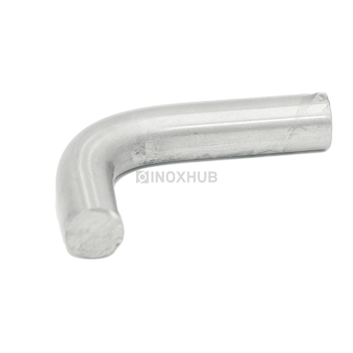 Короткий гнутик 60х40 мм изготовлен из нержавеющей стали AISI 304. Диаметр изделия — 12 мм. Поверхность GRIT 320 тщательно зашлифована. Деталь подходит для установки на улице.