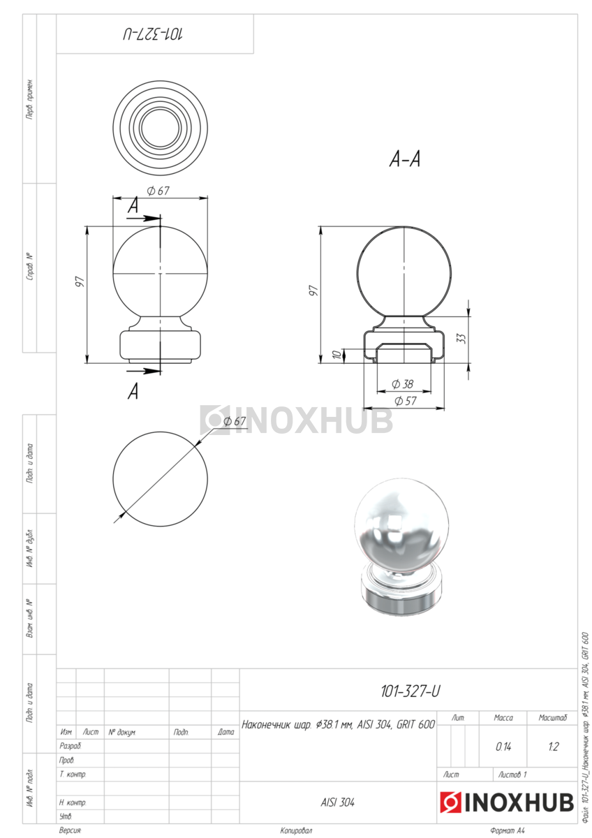 Наконечник шар, Ø38.1 мм, AISI 304, GRIT 600, в соответствии отраслевым стандартам из коррозионно-стойкого материала. Изделие применяется в составе металлических, стеклянных или комбинированных конструкций, где важны точные размеры, прочность соединений и стабильность в эксплуатации. Может использоваться при внутреннем и наружном монтаже — в зависимости от поставленной задачи и совместимых компонентов.