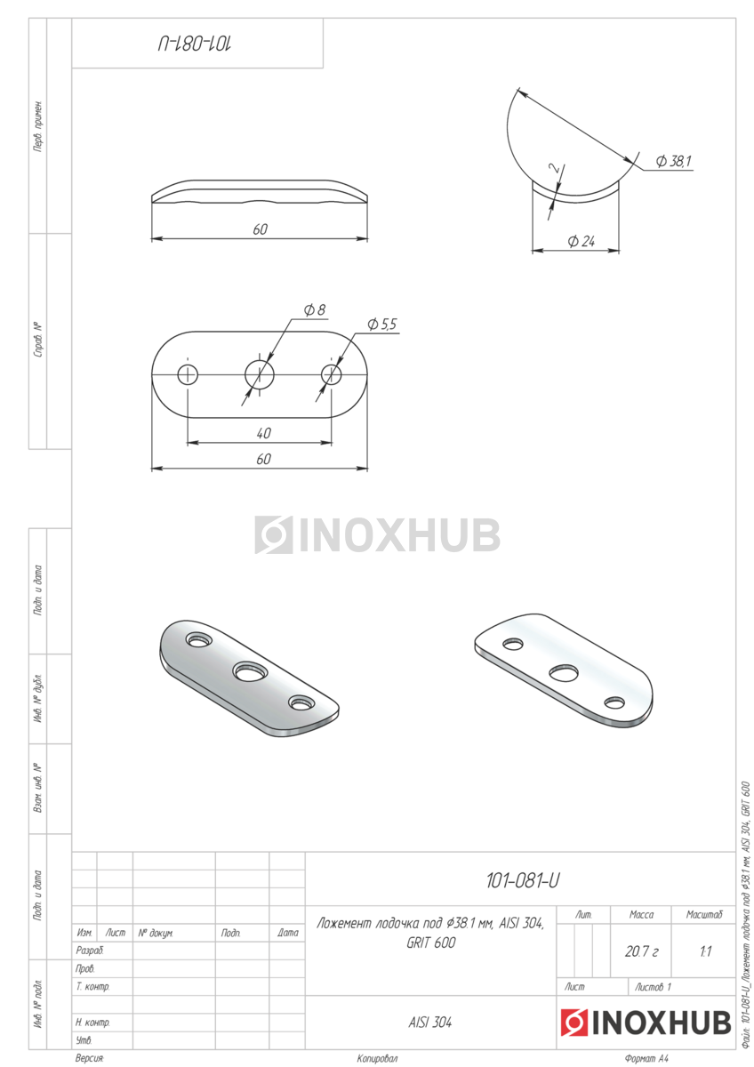 Ложемент лодочка под Ø38.1 мм, AISI 304, GRIT 600 в продаже. Оперативная доставка со склада в Москве. Все товары соответствуют стандартам качества.