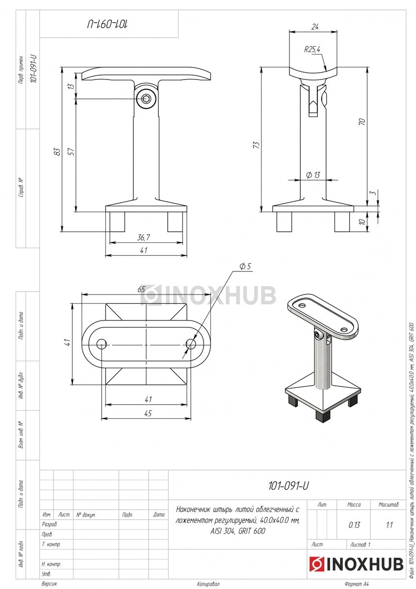 Наконечник штырь литой облегченный с ложементом (Ø50.8) регулируемый, 40.0×40.0 мм, AISI 304, GRIT 600 в продаже. Оперативная доставка со склада в Москве. Все товары соответствуют стандартам качества.