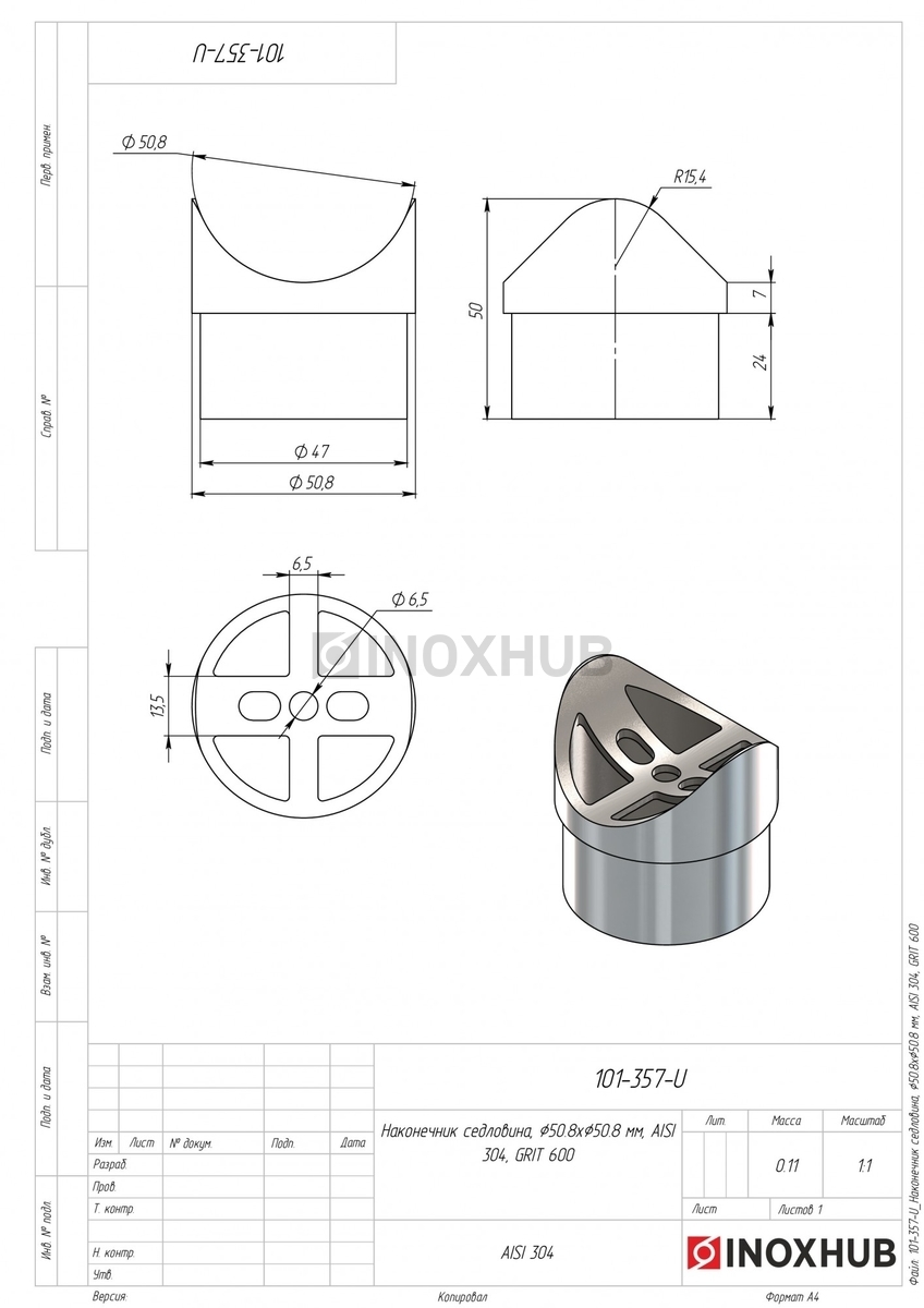 Наконечник седловина, Ø50.8ר50.8 мм, AISI 304, GRIT 600 в продаже. Оперативная доставка со склада в Москве. Все товары соответствуют стандартам качества.