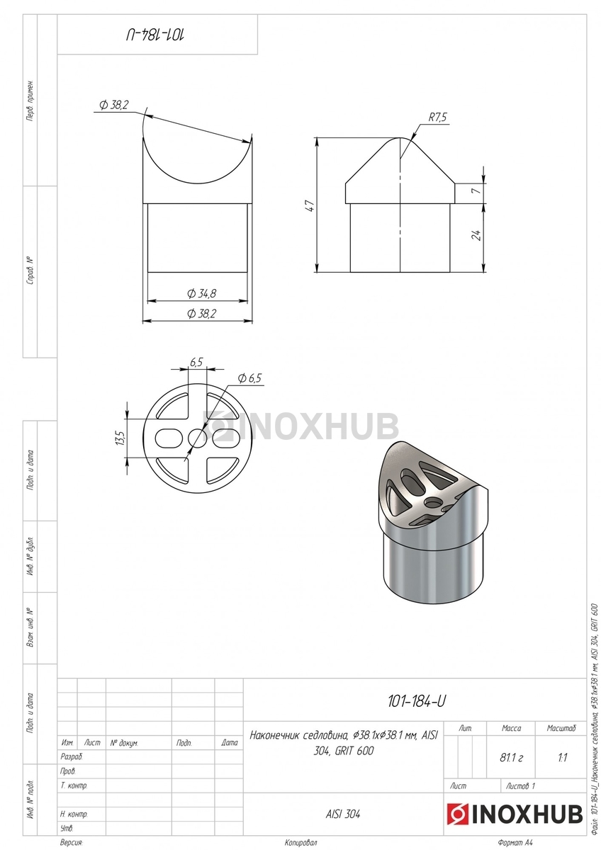 Наконечник седловина, Ø38.1ר38.1 мм, AISI 304, GRIT 600 в продаже. Оперативная доставка со склада в Москве. Все товары соответствуют стандартам качества.