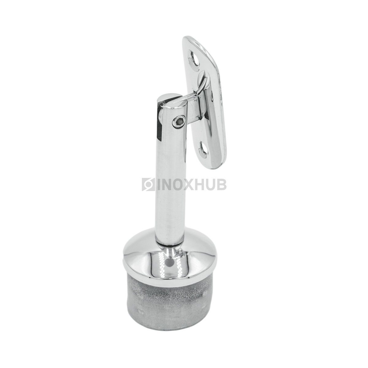Литой наконечник штырь с ложементом, регулируемый на стойку 38,1 мм под поручень 50,8 мм. Выполнен из стали AISI 304, что делает его пригодным для уличного применения. Поверхность полированная. Подходит для установки на прямые горизонтальные ограждения, а также на лестничные марши. Также может использоваться для установки мебели.