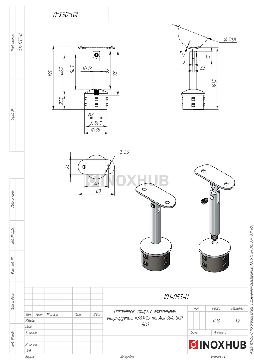 Наконечник штырь с ложементом (Ø50.8) регулируемый, Ø38.1×1.5 мм, AISI 304, GRIT 600, в соответствии отраслевым стандартам из коррозионно-стойкого материала. Изделие применяется в составе металлических, стеклянных или комбинированных конструкций, где важны точные размеры, прочность соединений и стабильность в эксплуатации. Может использоваться при внутреннем и наружном монтаже — в зависимости от поставленной задачи и совместимых компонентов.