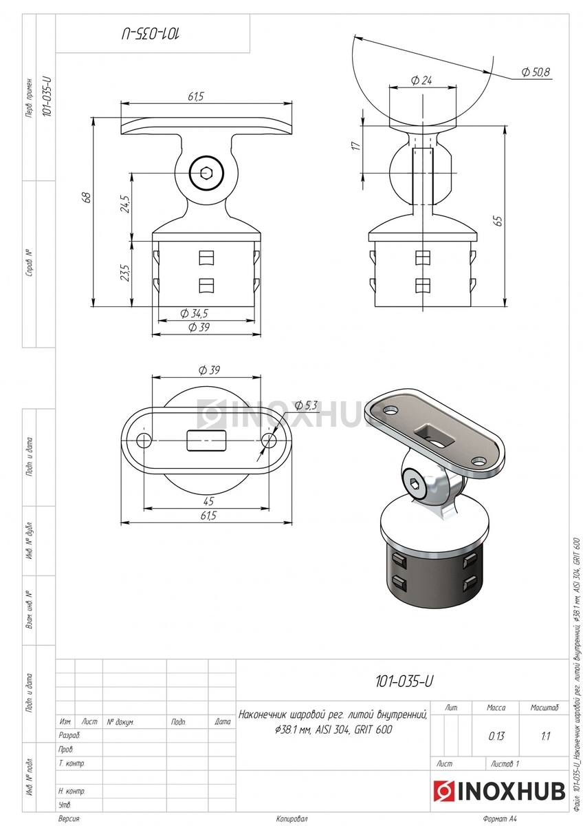 Наконечник шаровой рег. литой внутренний, Ø38.1 мм, AISI 304, GRIT 600 в продаже. Оперативная доставка со склада в Москве. Все товары соответствуют стандартам качества.