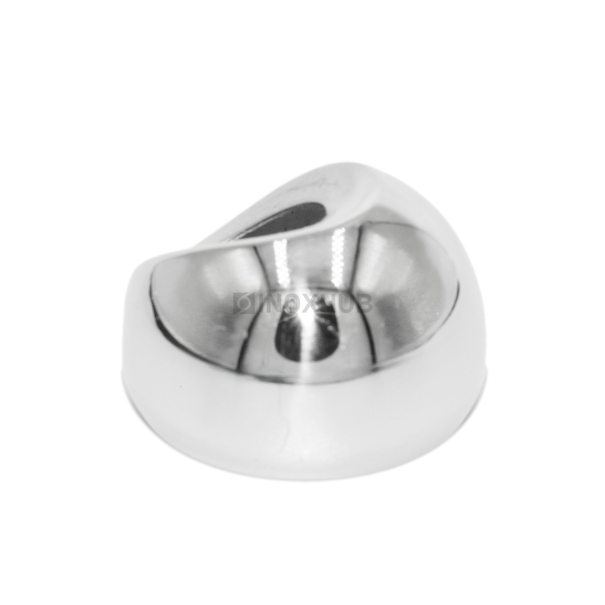 Соединение поручня со стойкой под 30°. Выполнен из стали AISI 304. Поверхность — шлифованная GRIT 320. Размер стойки составляет 38,1 мм. Размер поручня — 50,8 мм. Ложемент предусмотрен под круглый поручень.