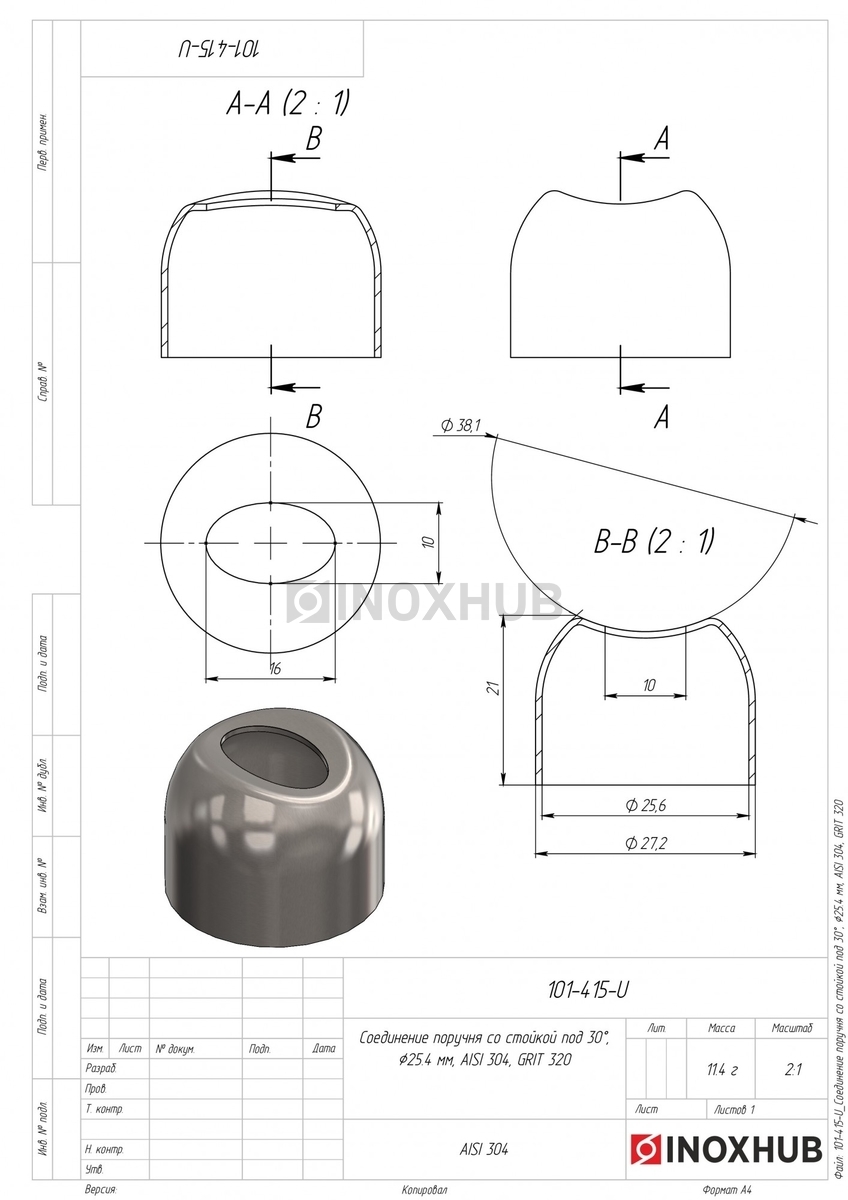 Соединение поручня со стойкой штамп. под 90°, Ø25.4 мм, AISI 304, GRIT 320 в продаже. Оперативная доставка со склада в Москве. Все товары соответствуют стандартам качества.