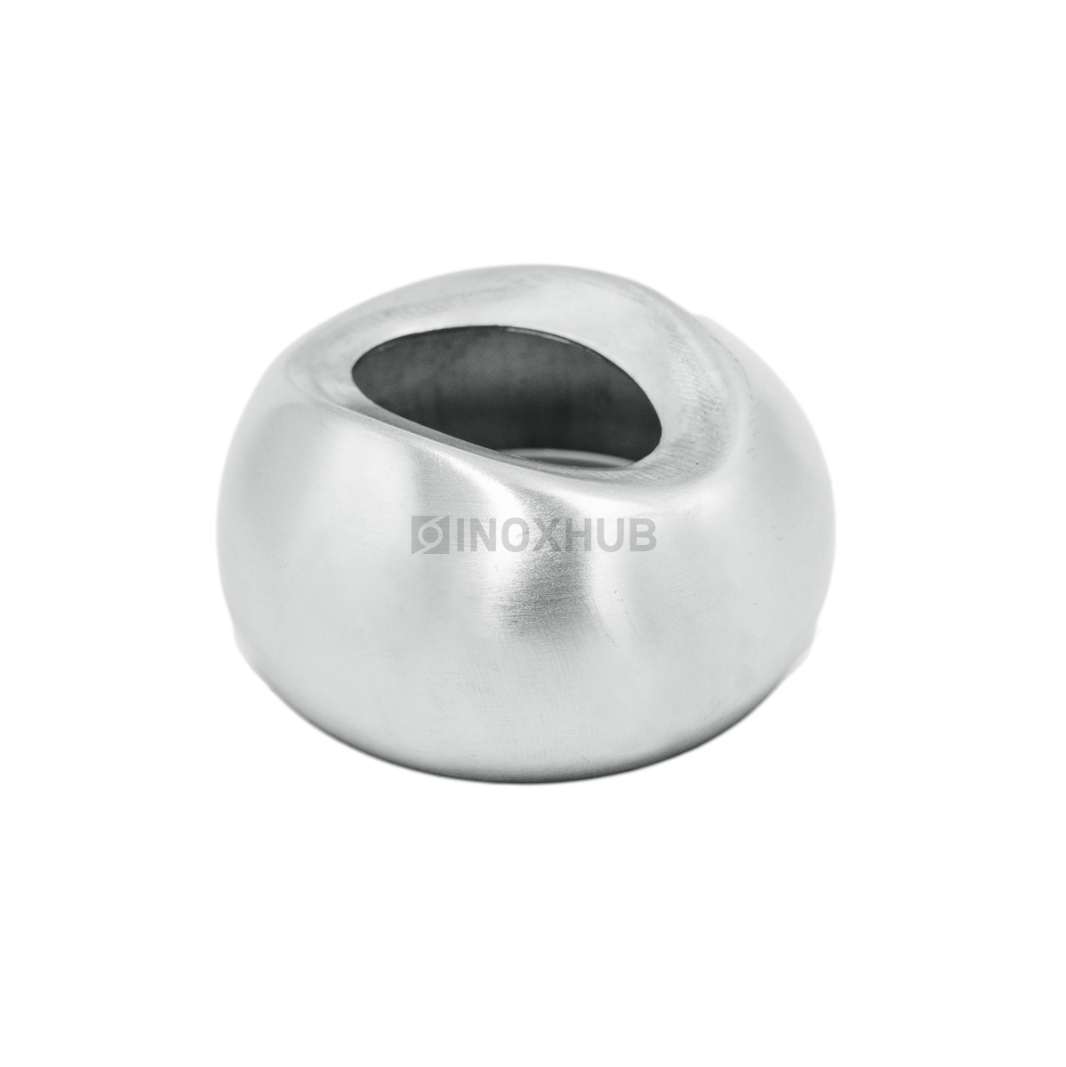 Применение. Один из наиболее часто встречаемых типов наконечников. Используется для стыковки круглых стоек и поручней на маршах наклонного типа. Подходит только для сварных конструкций. За счет точного клише имеет идеально выверенные размеры. Такие наконечники плотно обхватывают и фиксируют трубу поручня на верхнем ложе. Всего два касания электрода, и наконечник надежно зафиксирован на стойке.