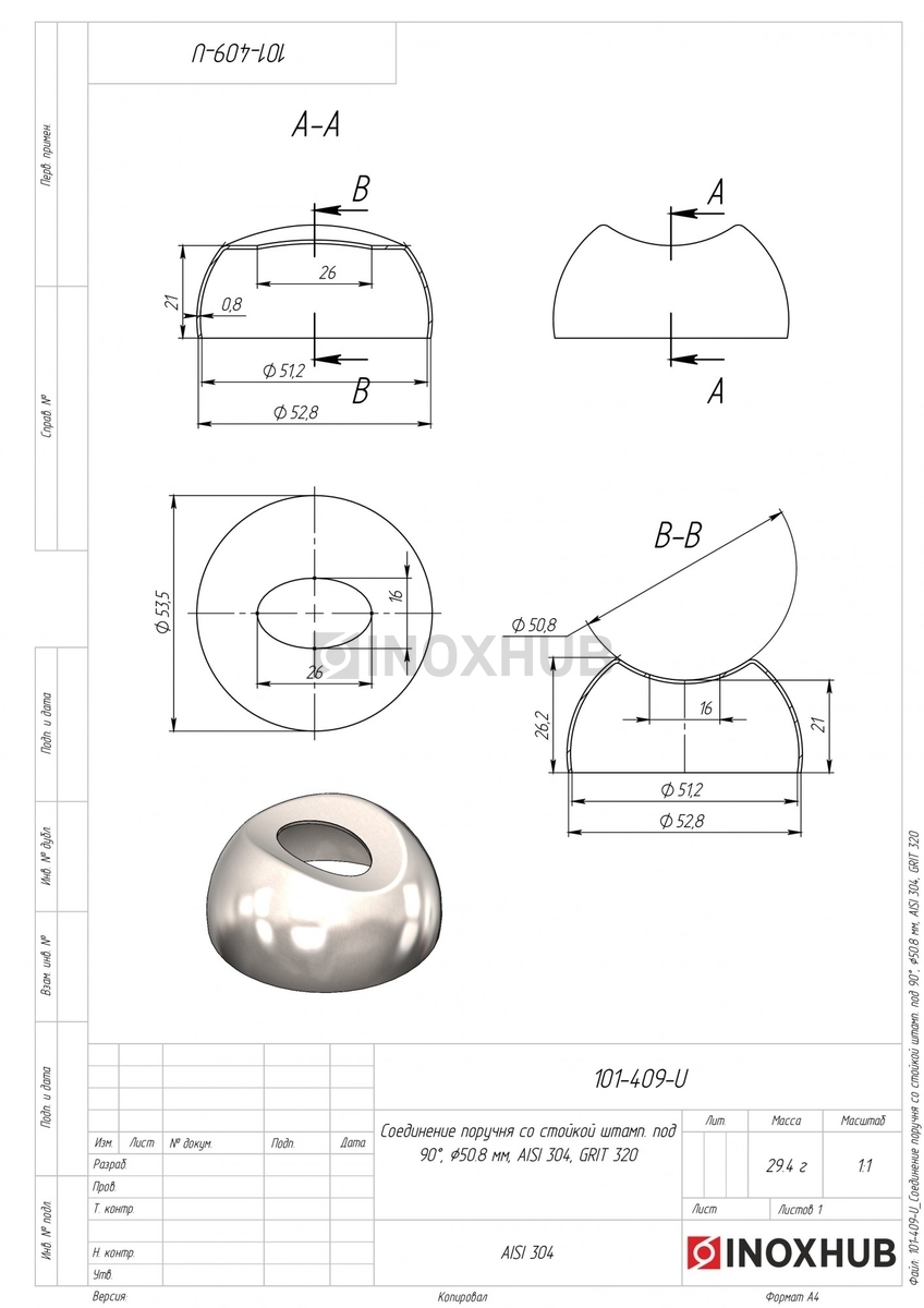 Соединение поручня со стойкой штамп. под 90°, Ø50.8 мм, AISI 304, GRIT 320 в продаже. Оперативная доставка со склада в Москве. Все товары соответствуют стандартам качества.