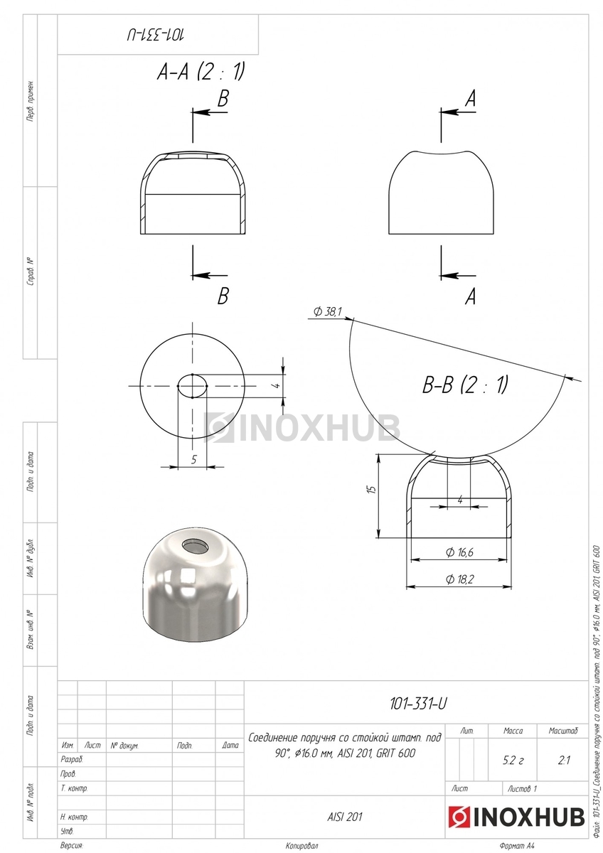 Соединение поручня со стойкой штамп. под 90°, Ø16.0 мм, AISI 201, GRIT 600 в продаже. Оперативная доставка со склада в Москве. Все товары соответствуют стандартам качества.