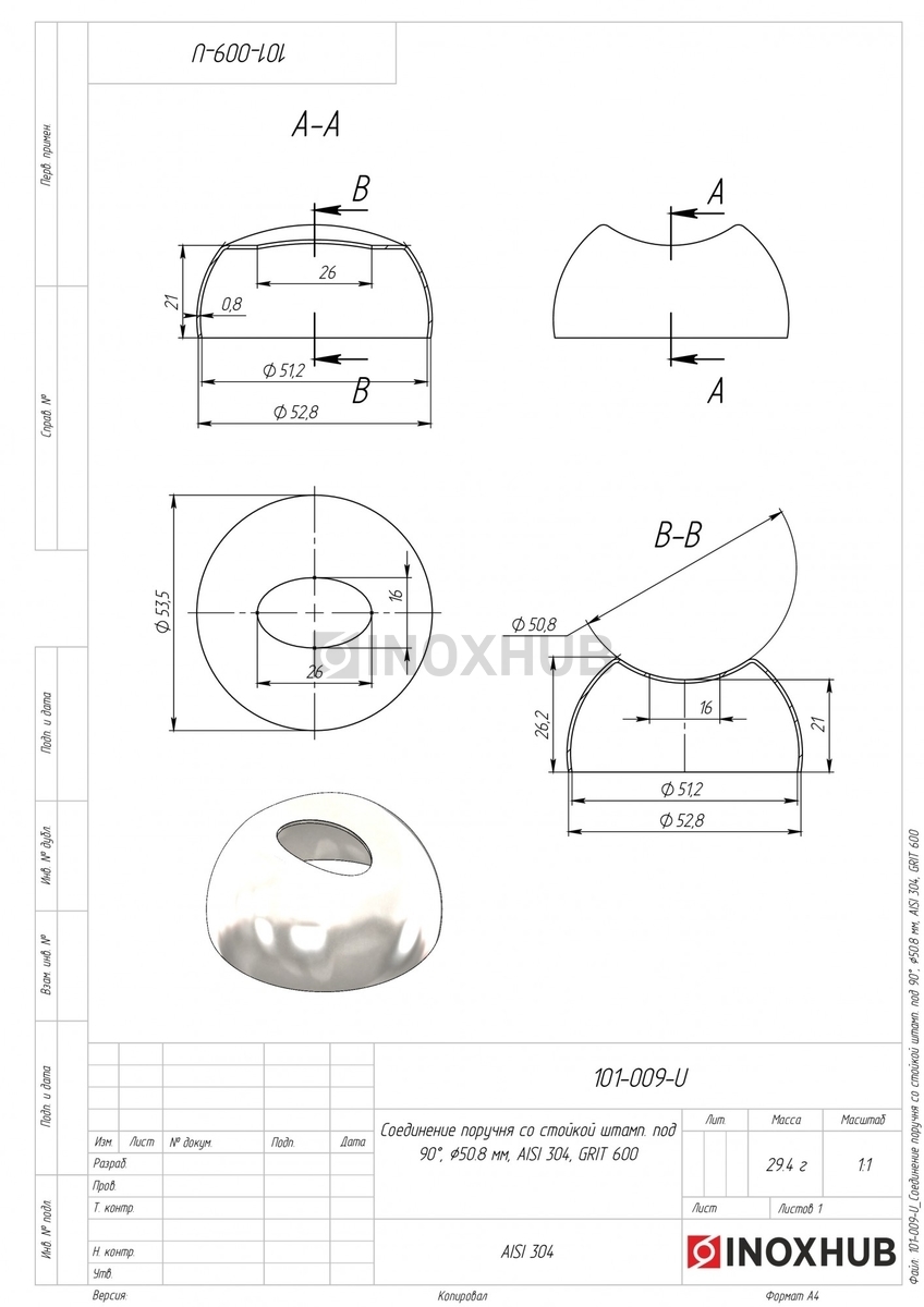 Соединение поручня со стойкой штамп. под 90°, Ø50.8 мм, AISI 304, GRIT 600 в продаже. Оперативная доставка со склада в Москве. Все товары соответствуют стандартам качества.