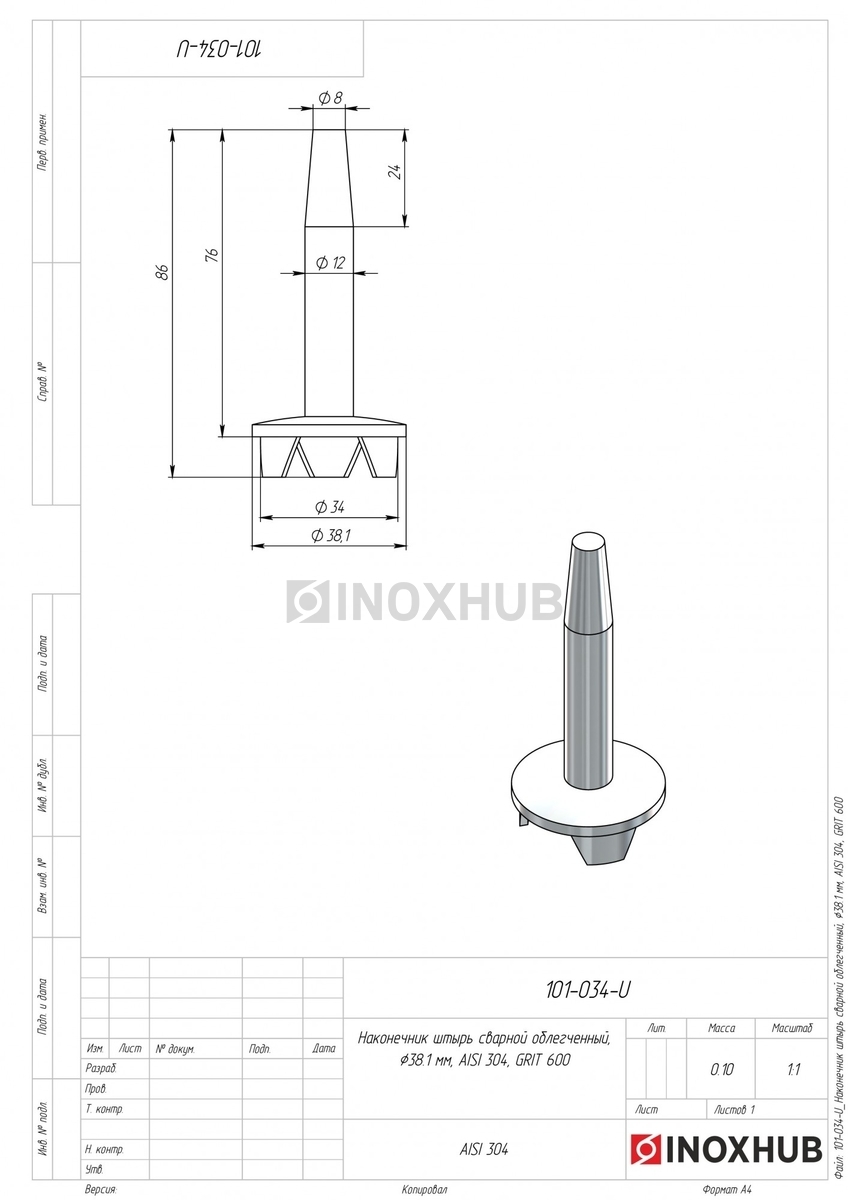 Наконечник штырь сварной облегченный, Ø38.1 мм, AISI 304, GRIT 600 в продаже. Оперативная доставка со склада в Москве. Все товары соответствуют стандартам качества.