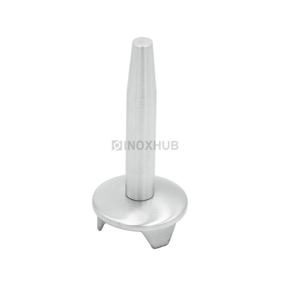 Сварной наконечник «палец» выполнен в форме конуса и предназначен для стойки диаметром 38,1 мм. Используется для ограждений любого вида. За счет небольшого пятна контакта монтаж изделия занимает минуты. Материал — высокопрочная сталь AISI 304. Шлифованная поверхность.