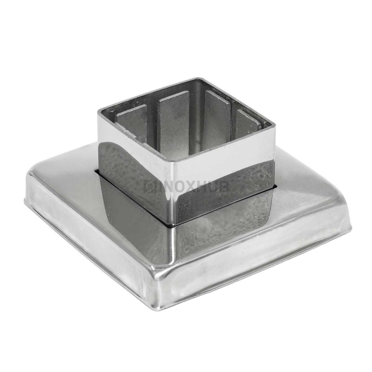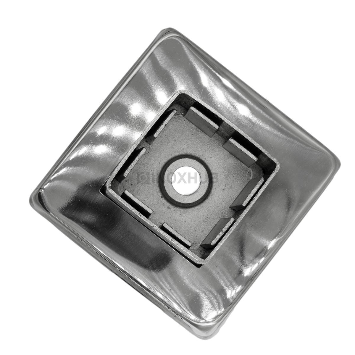 Применение. Предназначен для фиксации стоек ограждений из трубы 40×40 мм. Можно устанавливать на деревянную ступень, бетон, плитку.