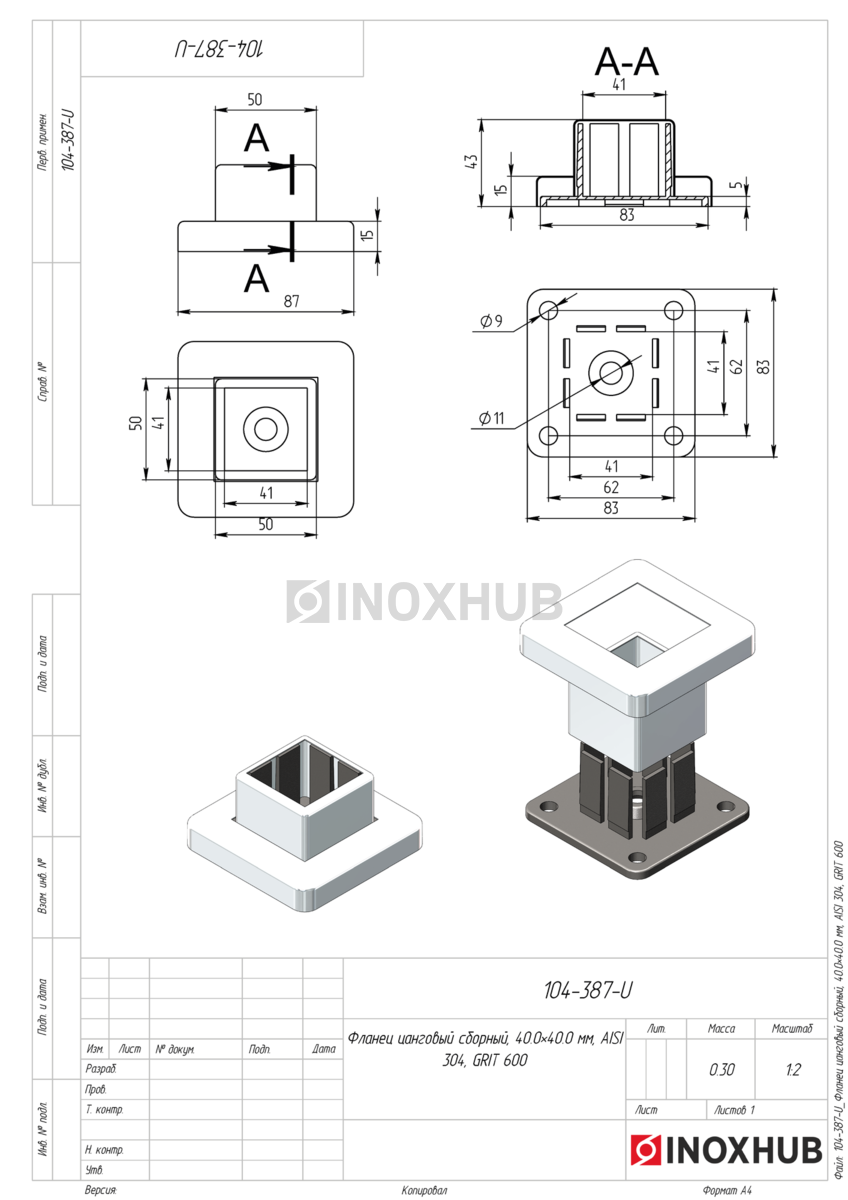 Фланец цанговый сборный, 40.0×40.0 мм, AISI 304, GRIT 600 в продаже. Оперативная доставка со склада в Москве. Все товары соответствуют стандартам качества.