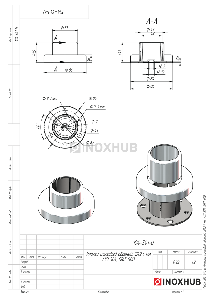 Фланец цанговый cборный, Ø42.4 мм, AISI 304, GRIT 600 в продаже. Оперативная доставка со склада в Москве. Все товары соответствуют стандартам качества.