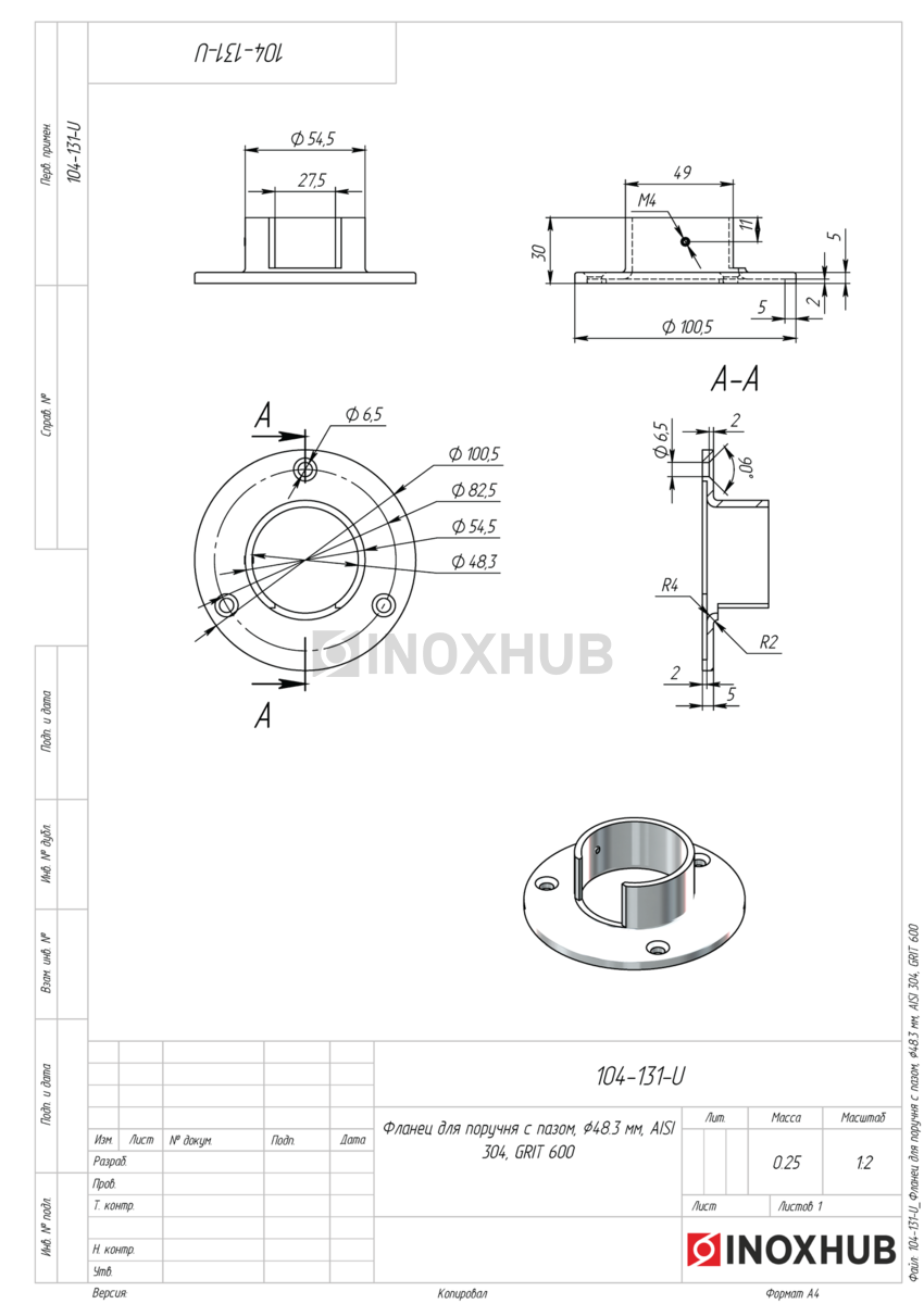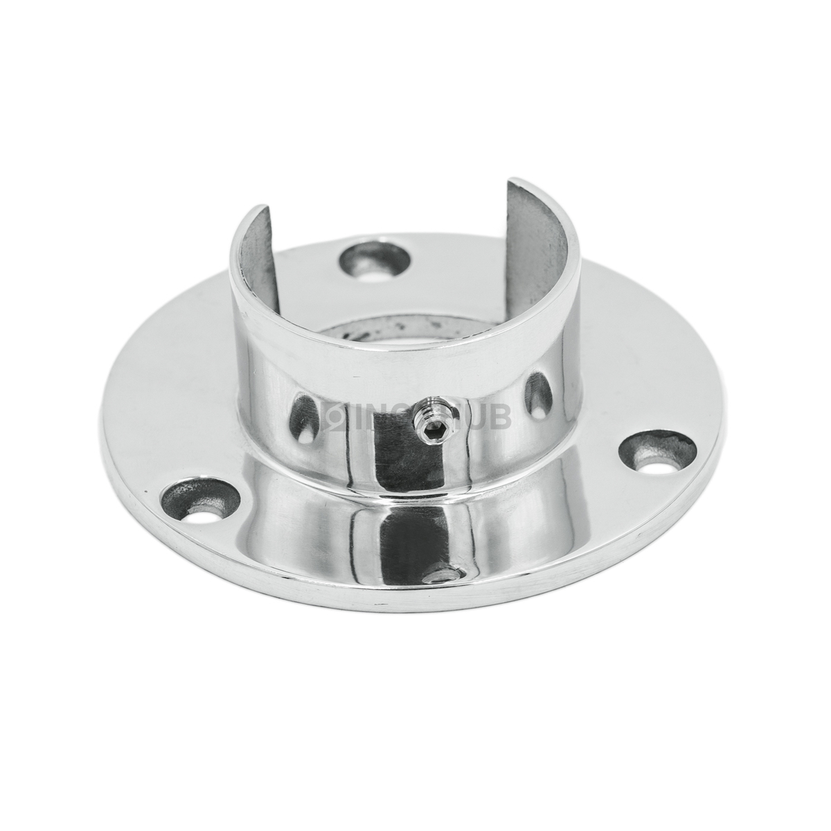 Фланец для поручня с пазом. Выполнен из стали AISI 304. Полированная поверхность GRIT 600 повышает привлекательность изделия.