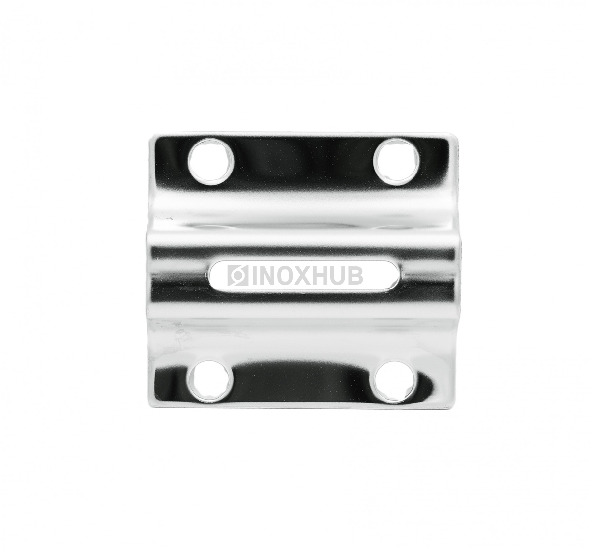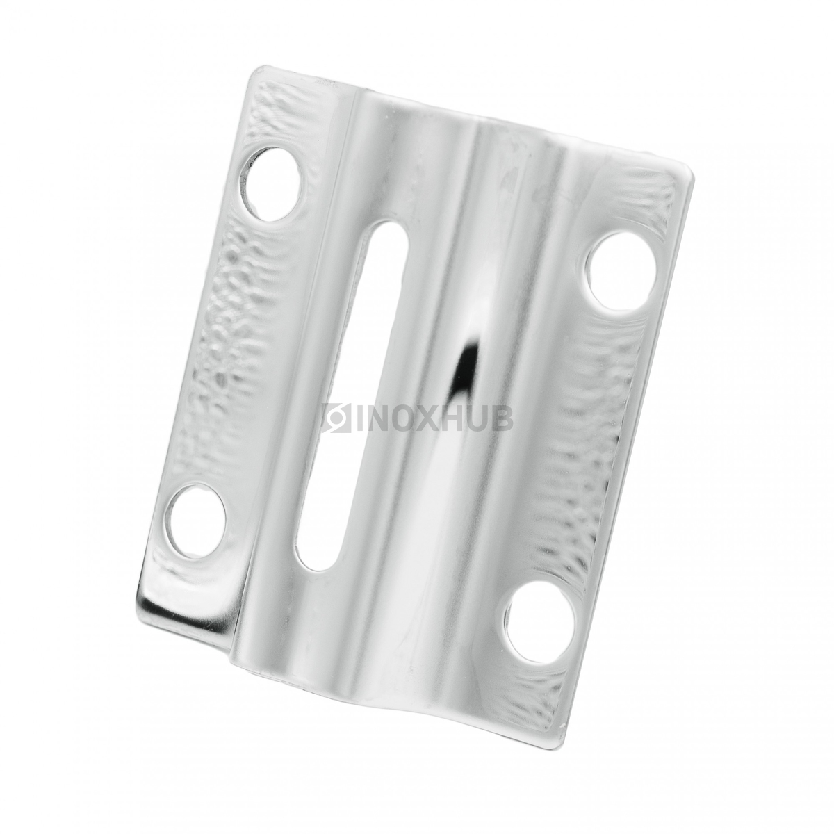 Пластина крепления стойки с торцевой части. Выполнена из стали с маркировкой AISI 304. Использовать ее можно в закрытом пространстве и на улице. Поверхность GRIT 600 — полированная.