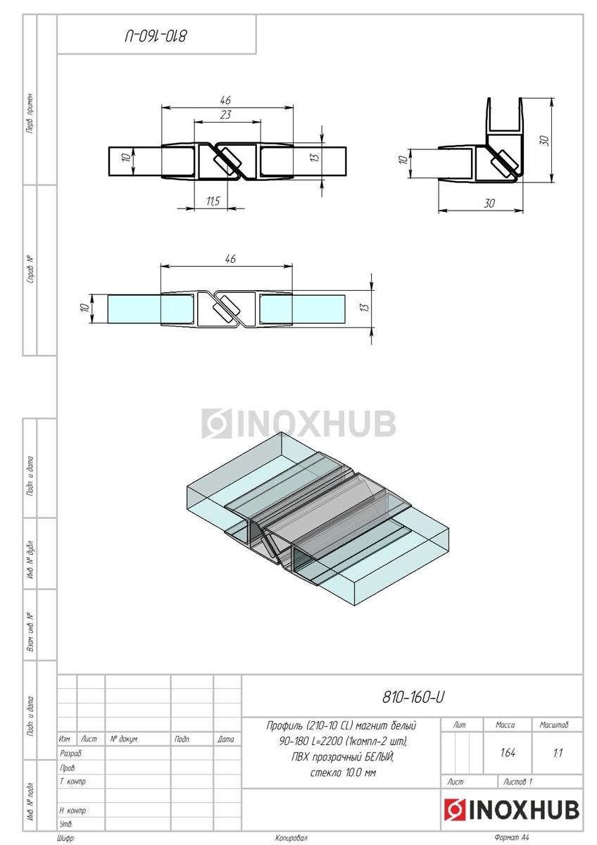 Профиль (210-10 CL) магнит белый 90º/180º, L=2200 (1компл/2 шт), стекло 10.0 мм, ПВХ прозрачный БЕЛЫЙ, в соответствии отраслевым стандартам из коррозионно-стойкого материала. Изделие применяется в составе металлических, стеклянных или комбинированных конструкций, где важны точные размеры, прочность соединений и стабильность в эксплуатации. Может использоваться при внутреннем и наружном монтаже — в зависимости от поставленной задачи и совместимых компонентов.