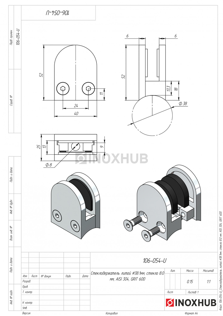 Стеклодержатель литой полукруглый Ø38.1 мм, стекло 8.0 мм, AISI 304, GRIT 600 в продаже. Оперативная доставка со склада в Москве. Все товары соответствуют стандартам качества.