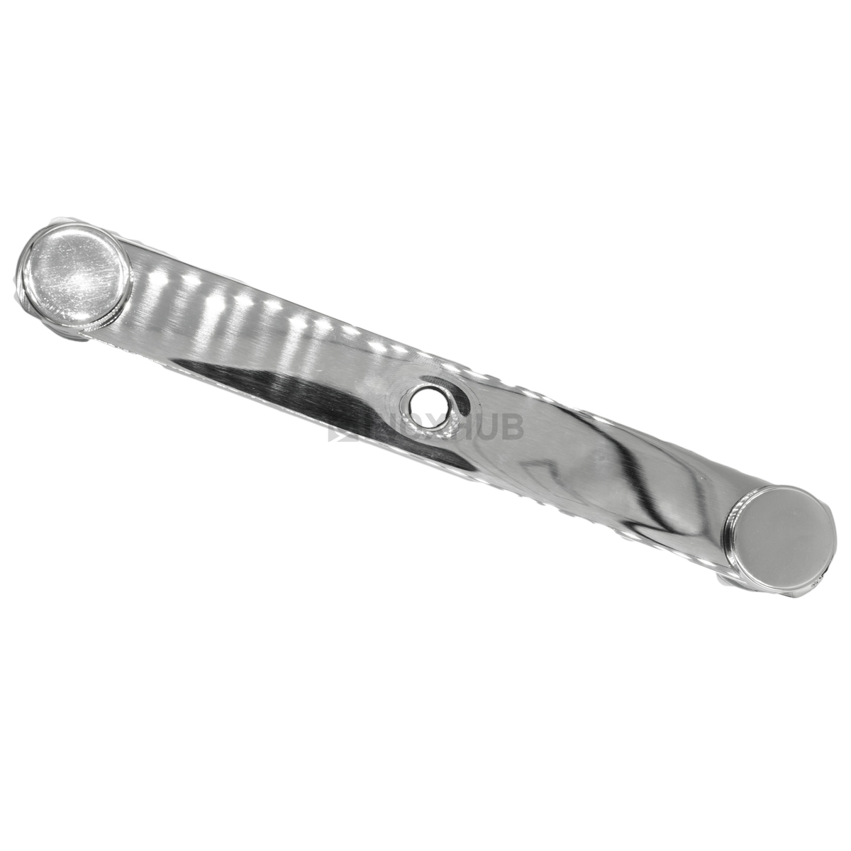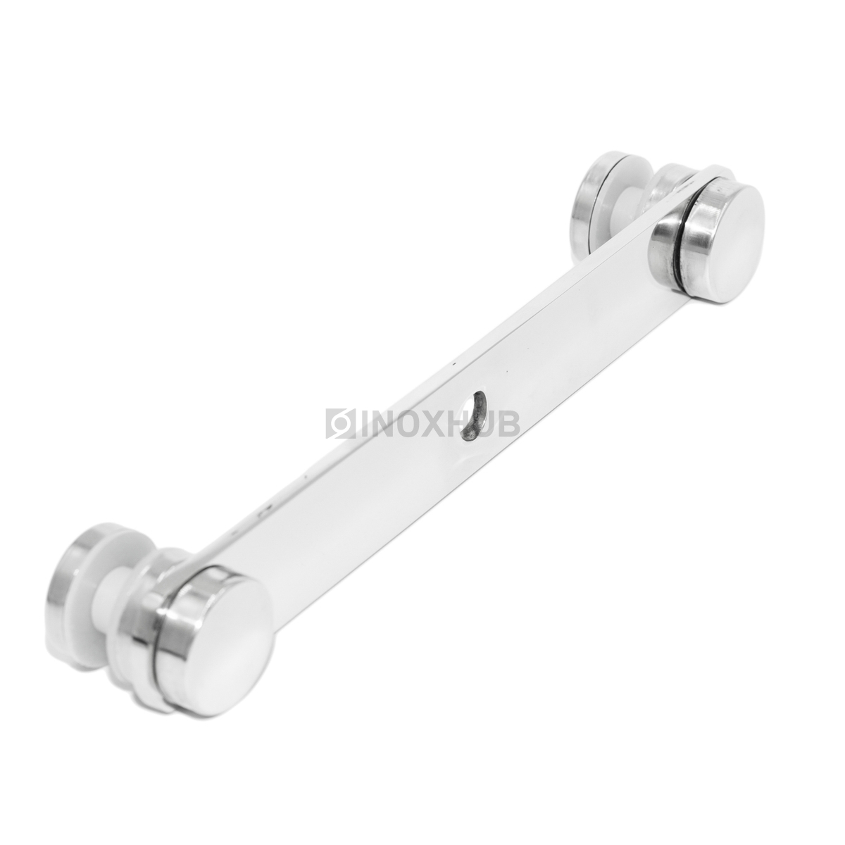 Стеклодержатель типа пластина для стекол толщиной 6-18 мм изготовлен из прочной стали марки AISI 316. Деталь комплектуется втулками, прокладками, декоративными гайками, прижимными декоративными шайбами, винтами. Держатель подходит для установки на улице, в условиях повышенной влажности, вблизи водоемов и других агрессивных средах. Металлические элементы комплекта крепления имеют полированную поверхность GRIT 600.