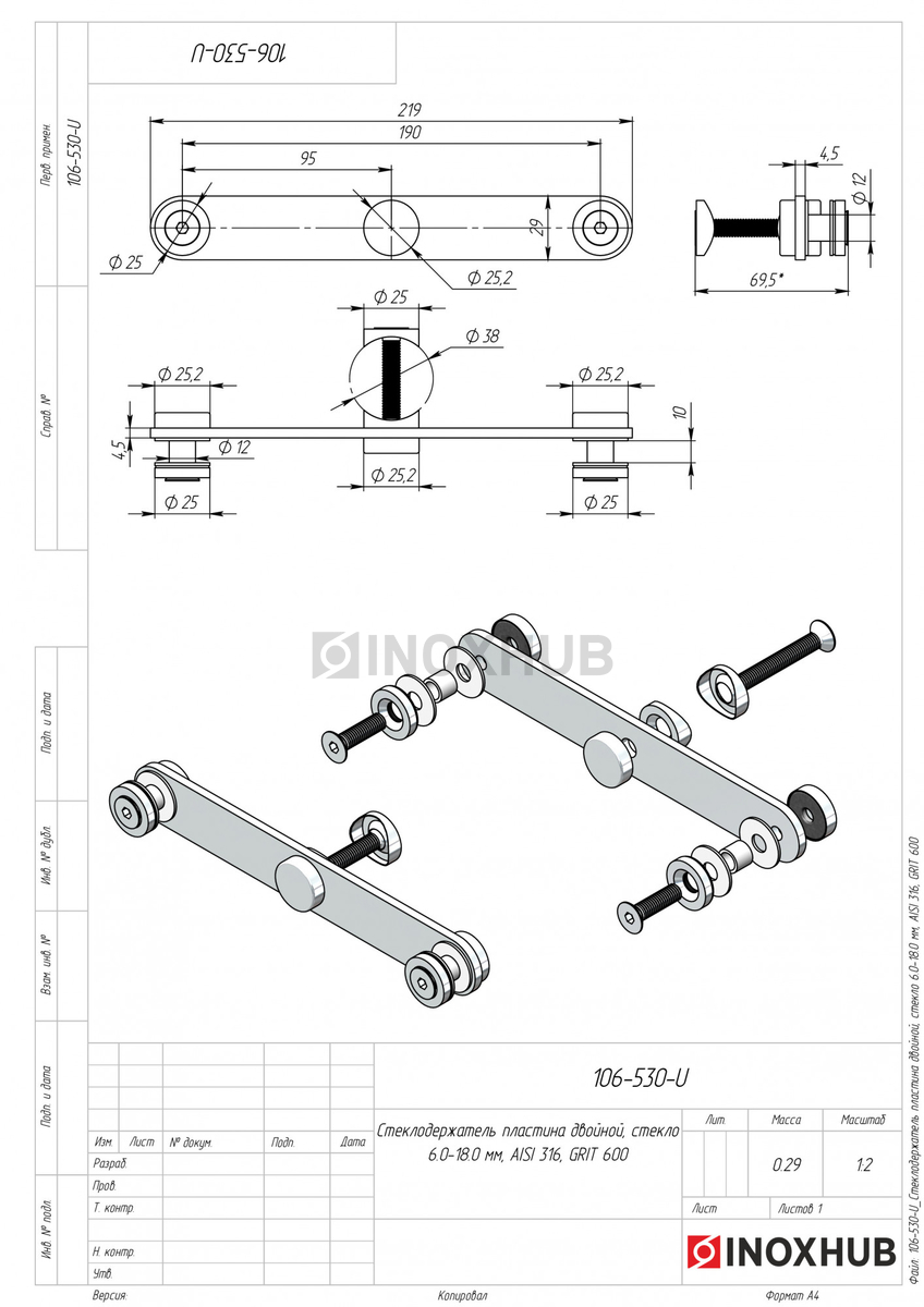 Стеклодержатель пластина двойной, стекло 6.0-18.0 мм, AISI 316, GRIT 600 в продаже. Оперативная доставка со склада в Москве. Все товары соответствуют стандартам качества.