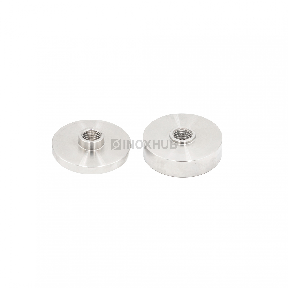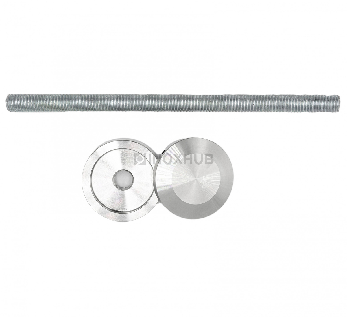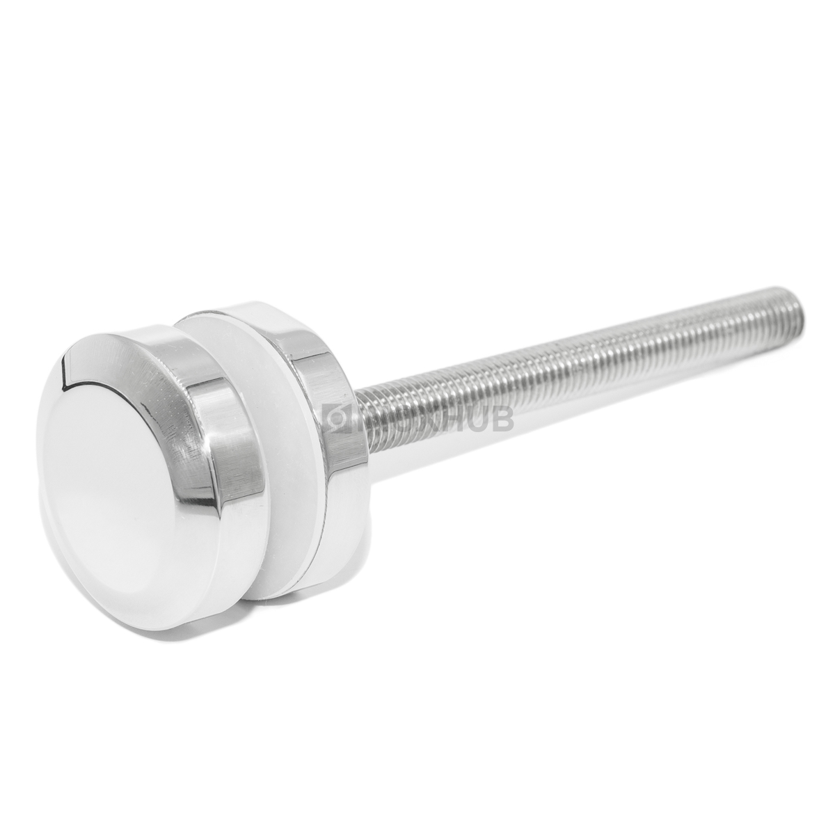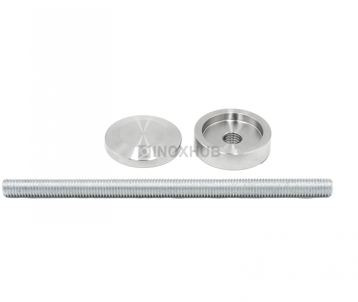 Точечный стеклодержатель размером шпильки М12 подходит для стекол толщиной 6-30 мм. Шпилька и шайбы изготовлены из стали марки AISI 304, поэтому их можно эксплуатировать на улице. Длина шпильки — 200 мм, диаметр шайб — 50 мм. Поверхность шлифованная GRIT 320.