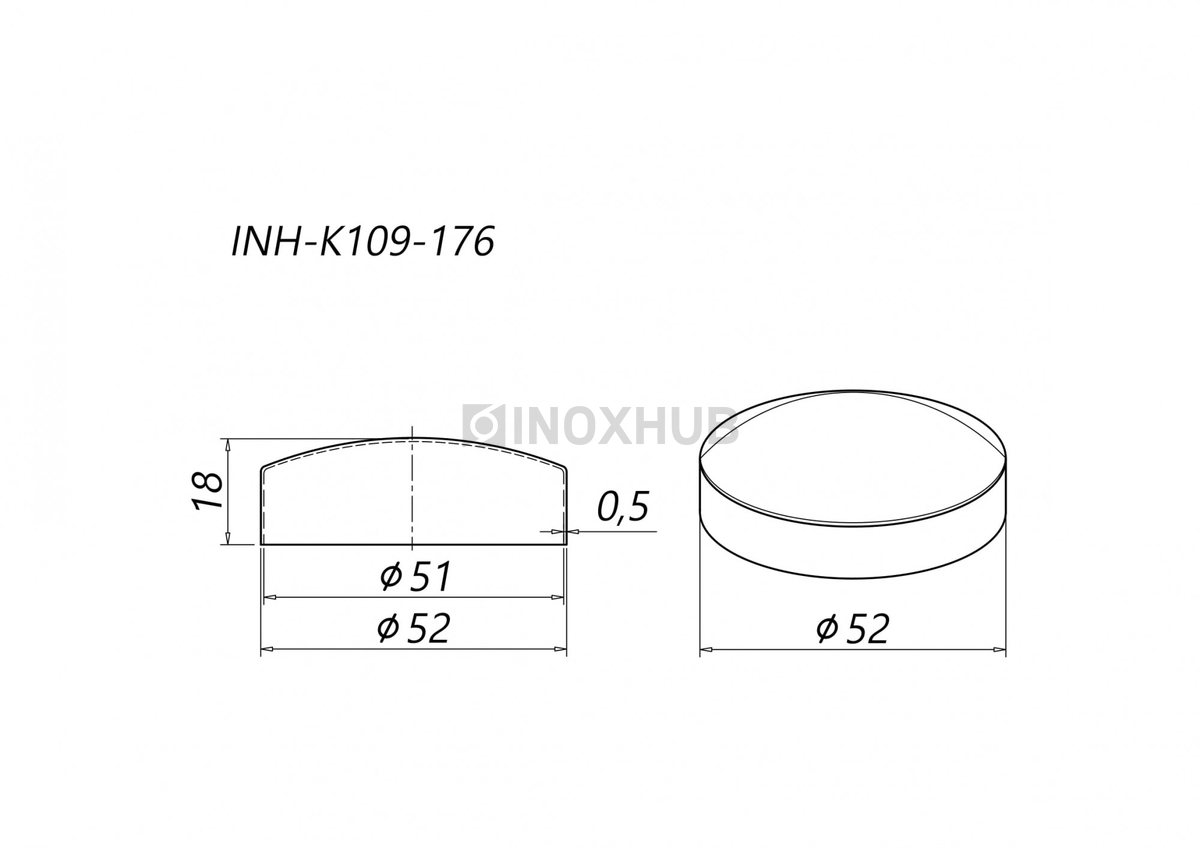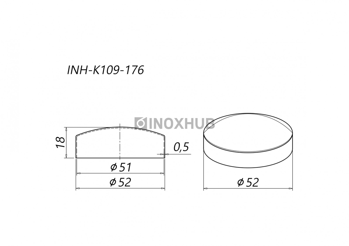 Штампованная внешняя заглушка на трубу диаметром 50,8 мм. Материал — нержавеющая сталь AISI 304. Деталь можно установить в помещении и в уличных условиях. Полированная поверхность GRIT 600 устойчива к коррозии, долго сохраняет первоначальный вид.