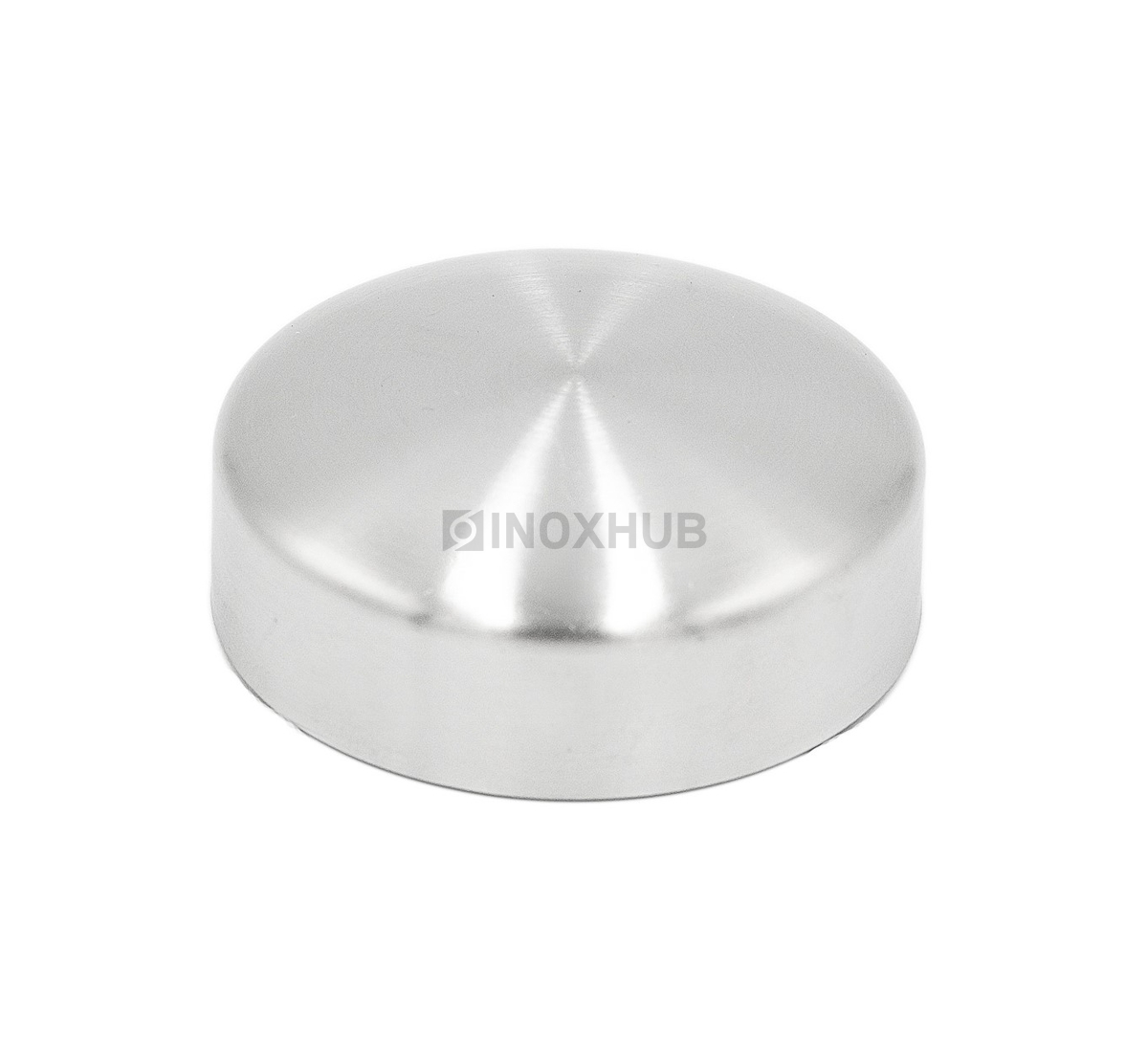 Штампованная внешняя заглушка на трубу диаметром 50,8 мм. Материал — нержавеющая сталь AISI 304. Деталь можно установить в помещении и в уличных условиях. Шлифованная поверхность — GRIT 320, матовая.