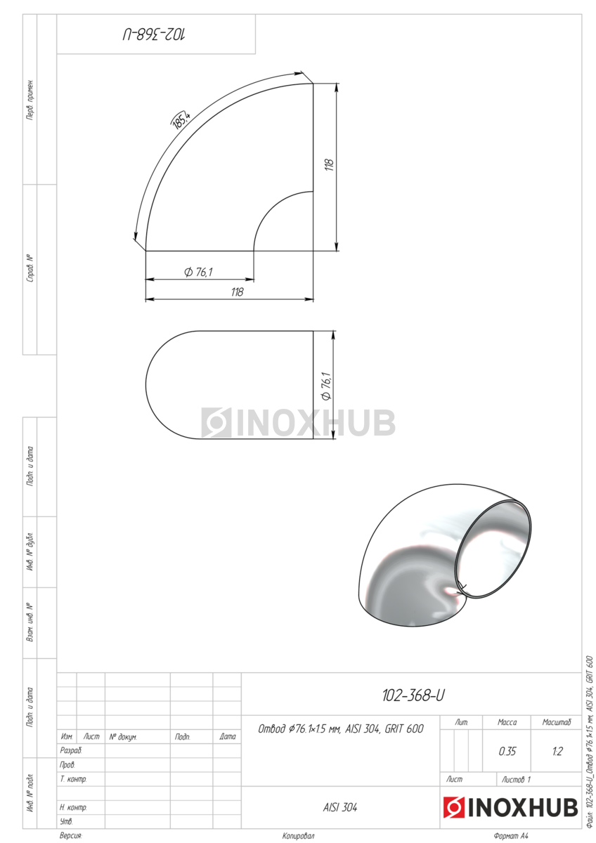 Отвод Ø76.1×1.5 мм, AISI 304, GRIT 600 в продаже. Оперативная доставка со склада в Москве. Все товары соответствуют стандартам качества.