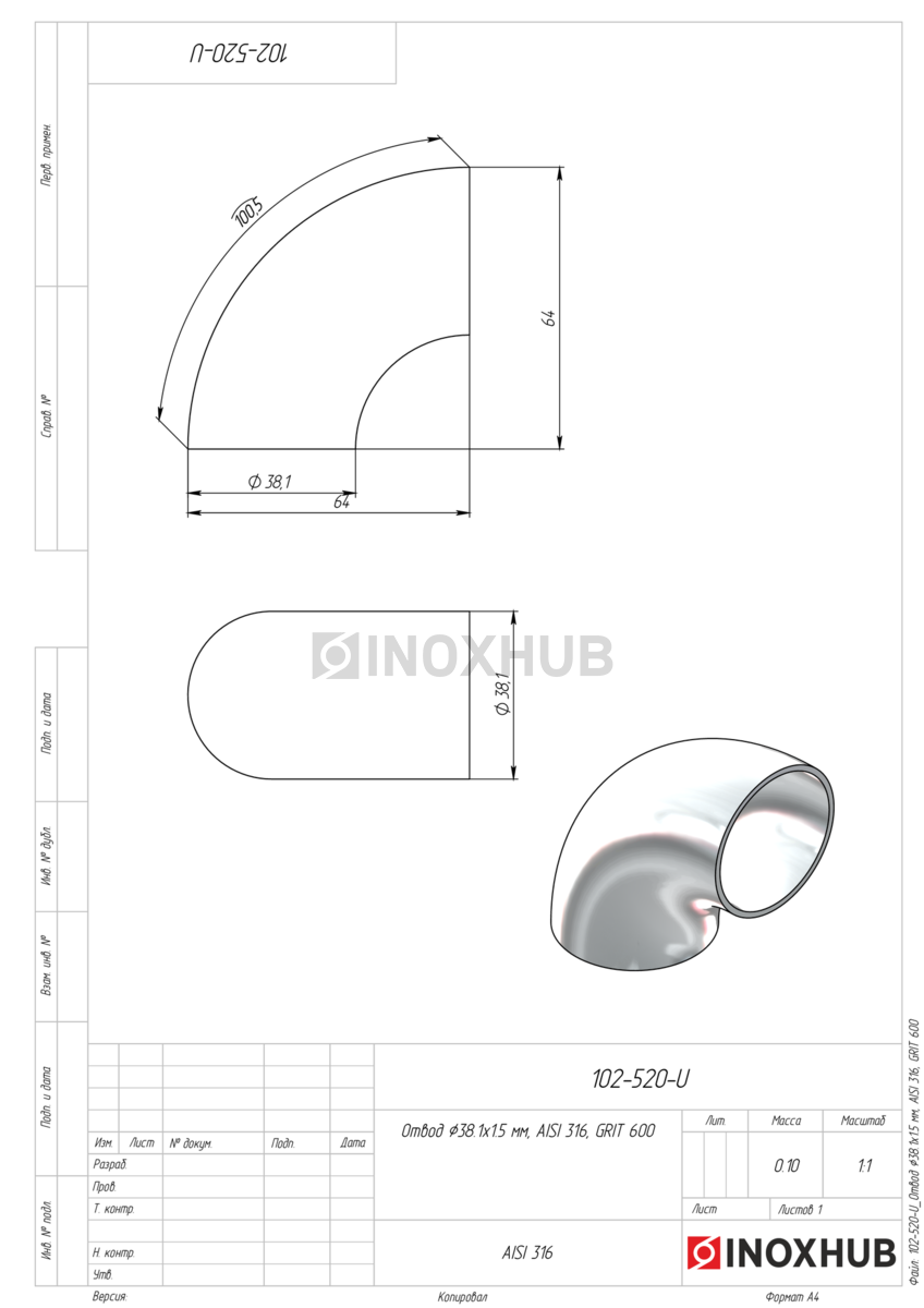 Отвод Ø38.1×1.5 мм, AISI 316, GRIT 600 в продаже. Оперативная доставка со склада в Москве. Все товары соответствуют стандартам качества.