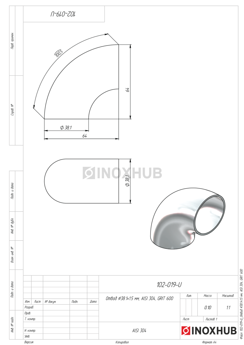 Отвод Ø38.1×1.5 мм, AISI 304, GRIT 600 в продаже. Оперативная доставка со склада в Москве. Все товары соответствуют стандартам качества.