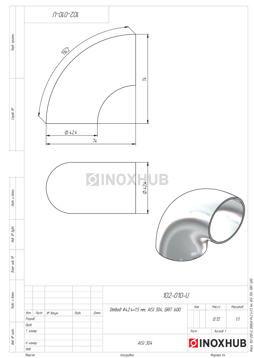 Отвод Ø42.4×1.5 мм, AISI 304, GRIT 600 в продаже. Оперативная доставка со склада в Москве. Все товары соответствуют стандартам качества.