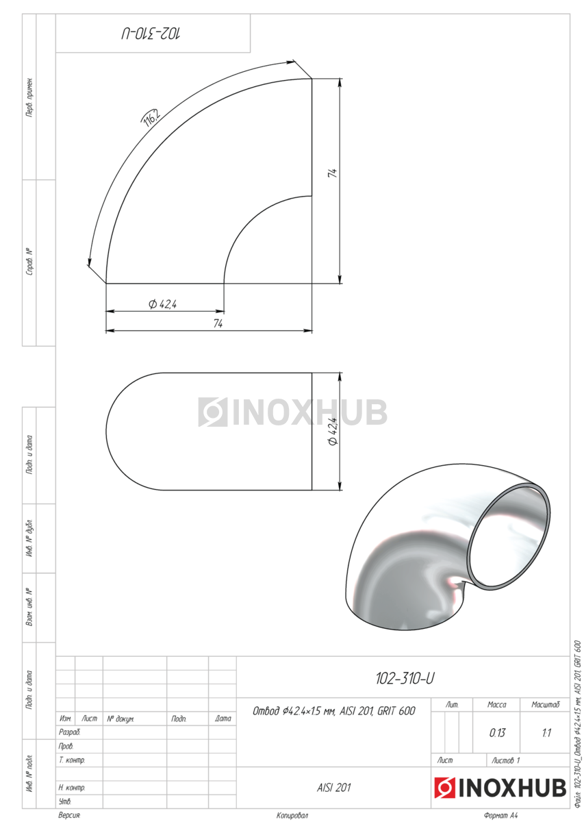 Отвод Ø42.4×1.5 мм, AISI 201, GRIT 600, в соответствии отраслевым стандартам из коррозионно-стойкого материала. Изделие применяется в составе металлических, стеклянных или комбинированных конструкций, где важны точные размеры, прочность соединений и стабильность в эксплуатации. Может использоваться при внутреннем и наружном монтаже — в зависимости от поставленной задачи и совместимых компонентов.