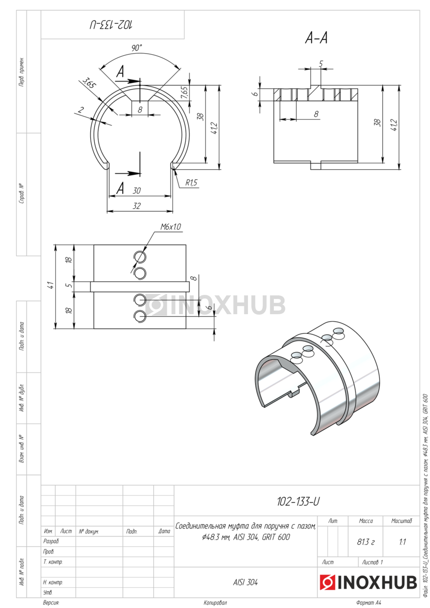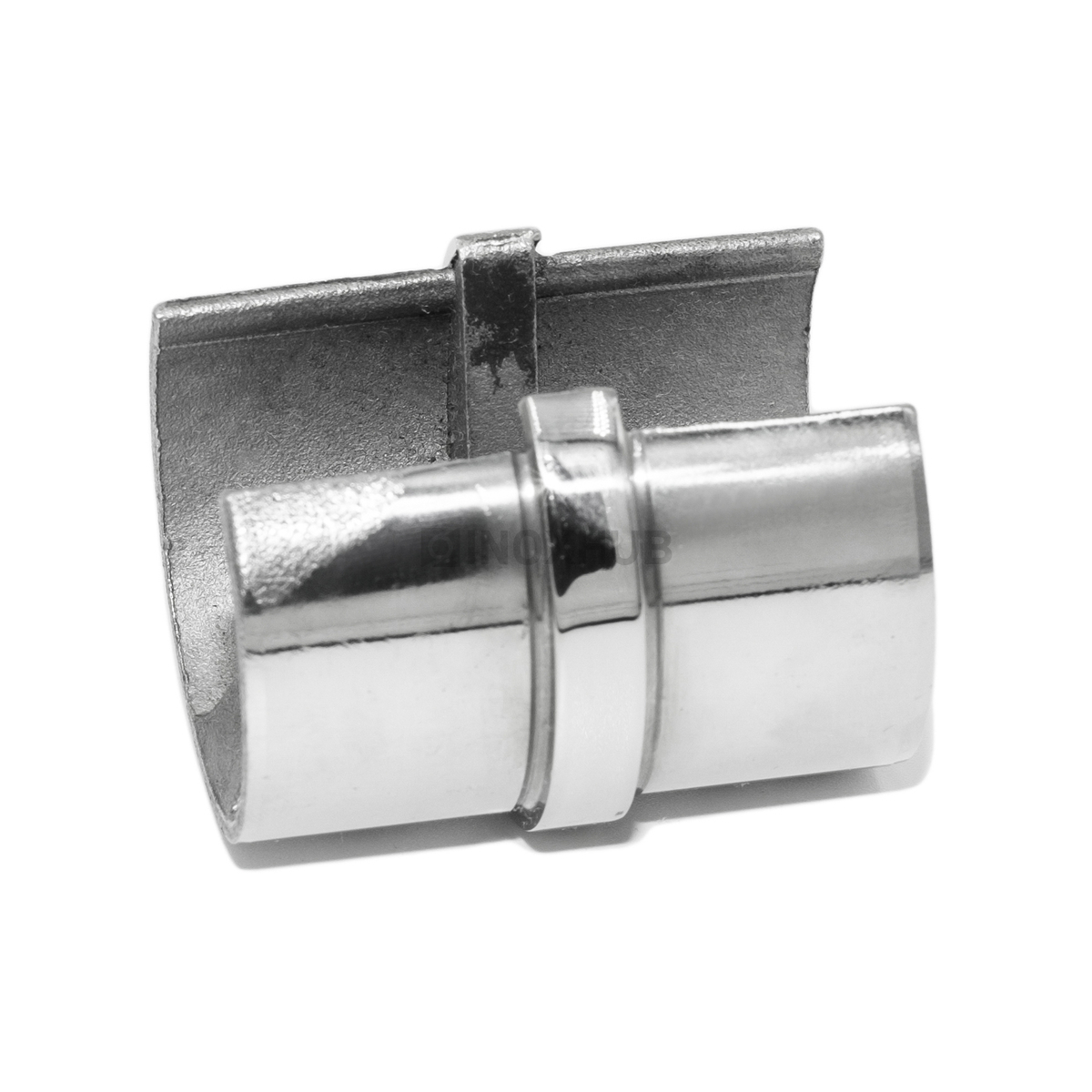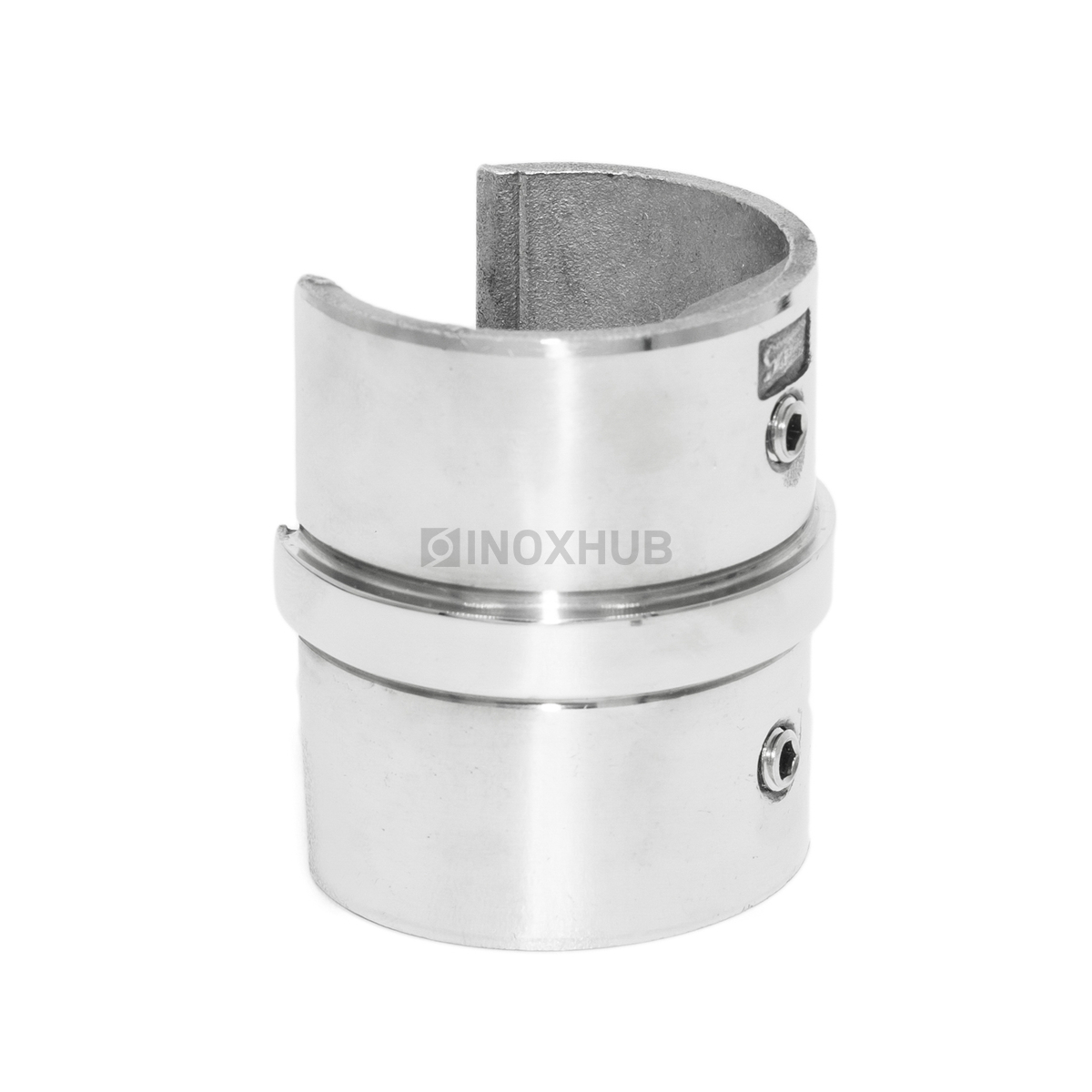 Муфта для соединения труб с пазом. Выполнена из высокопрочной стали AISI 304. Поверхность изделия GRIT 600 — полированная.
