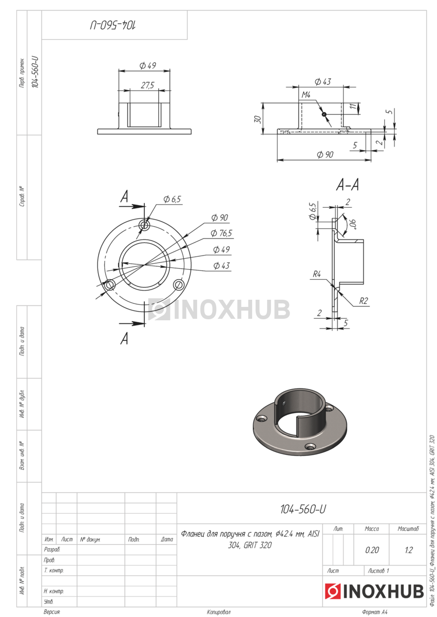 Фланец для поручня с пазом, Ø42.4 мм, AISI 304, GRIT 320, в соответствии отраслевым стандартам из коррозионно-стойкого материала. Изделие применяется в составе металлических, стеклянных или комбинированных конструкций, где важны точные размеры, прочность соединений и стабильность в эксплуатации. Может использоваться при внутреннем и наружном монтаже — в зависимости от поставленной задачи и совместимых компонентов.