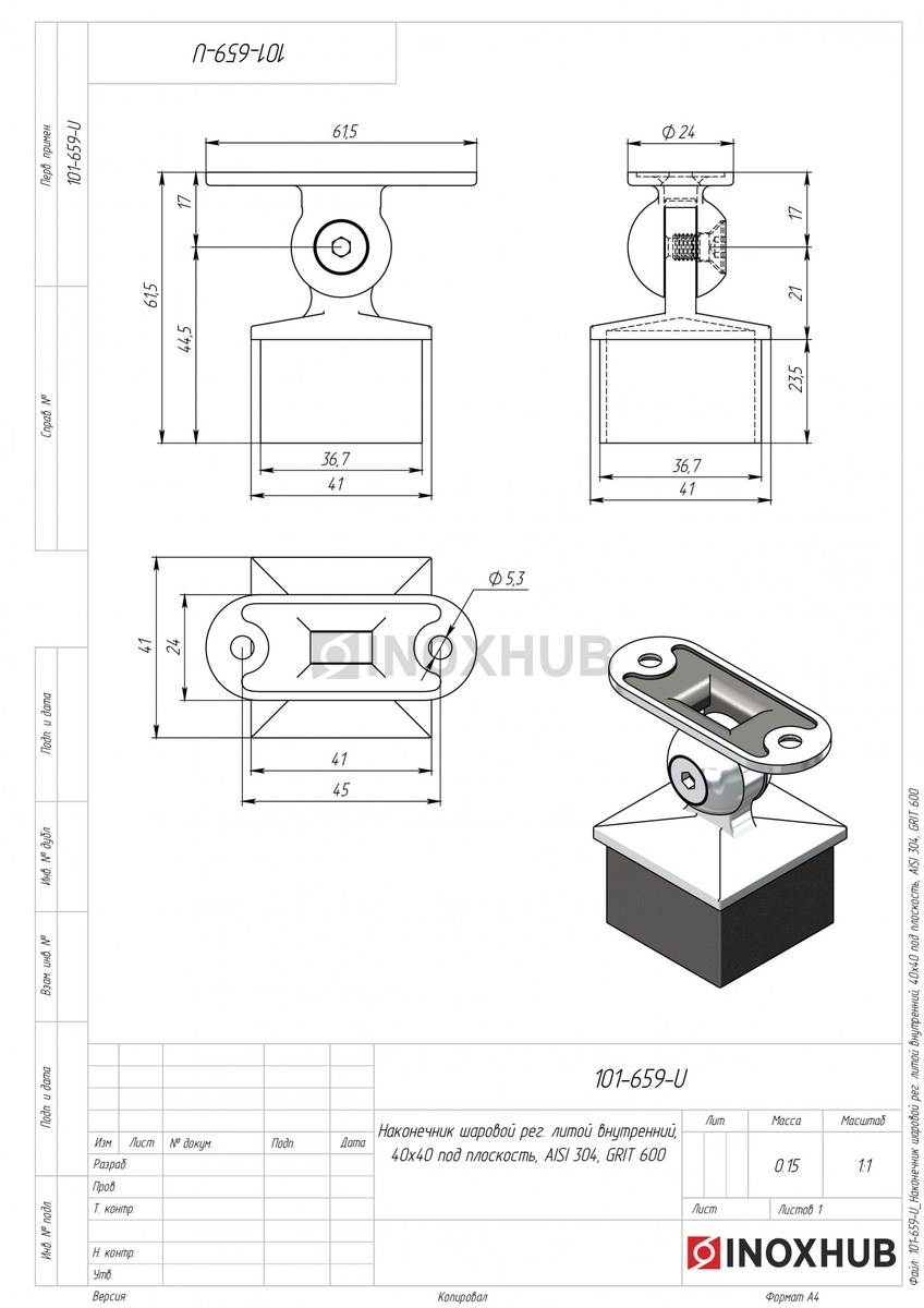 Наконечник шаровой рег. литой внутренний под плоскость, 40×40 мм, AISI 304, GRIT 600 в продаже. Оперативная доставка со склада в Москве. Все товары соответствуют стандартам качества.