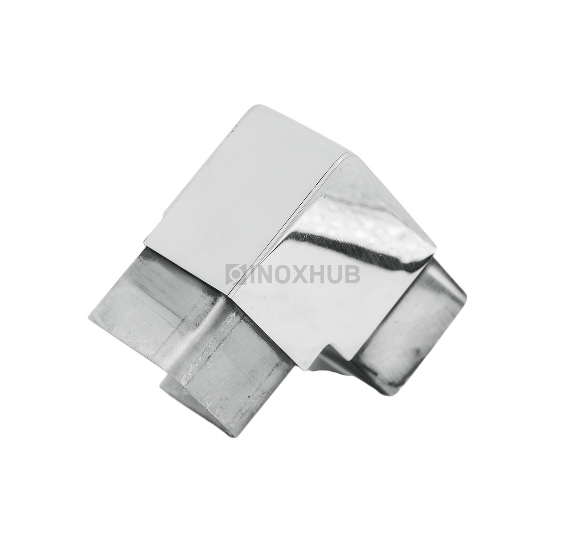 Отвод для поручня с пазом 40х40 мм. Выполнен из AISI 304 — высокопрочной стали. Имеет поверхность GRIT 600.
