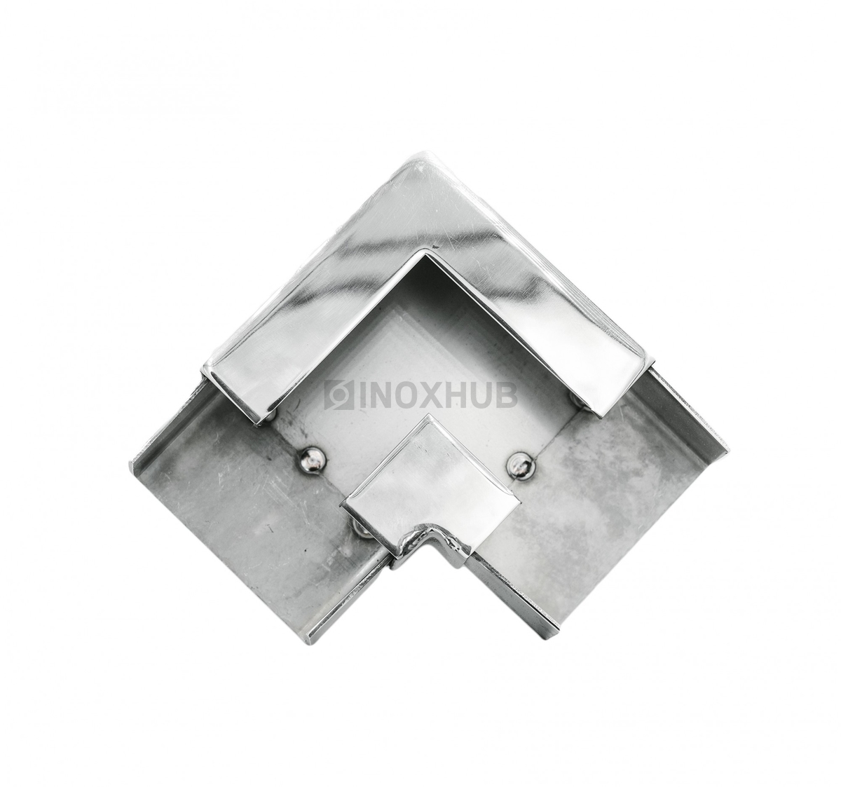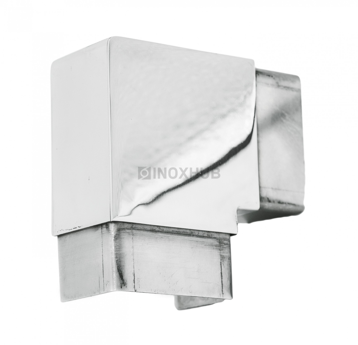Отвод для поручня с пазом. Материал — высокопрочная сталь AISI 304. Это позволяет монтировать его на улице и в помещении. Поверхность изделия полированная.