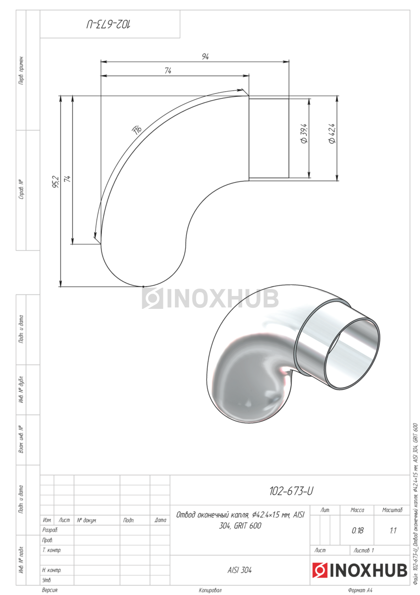 Отвод оконечный капля, Ø42.4×1.5 мм, AISI 304, GRIT 600, в соответствии отраслевым стандартам из коррозионно-стойкого материала. Изделие применяется в составе металлических, стеклянных или комбинированных конструкций, где важны точные размеры, прочность соединений и стабильность в эксплуатации. Может использоваться при внутреннем и наружном монтаже — в зависимости от поставленной задачи и совместимых компонентов.